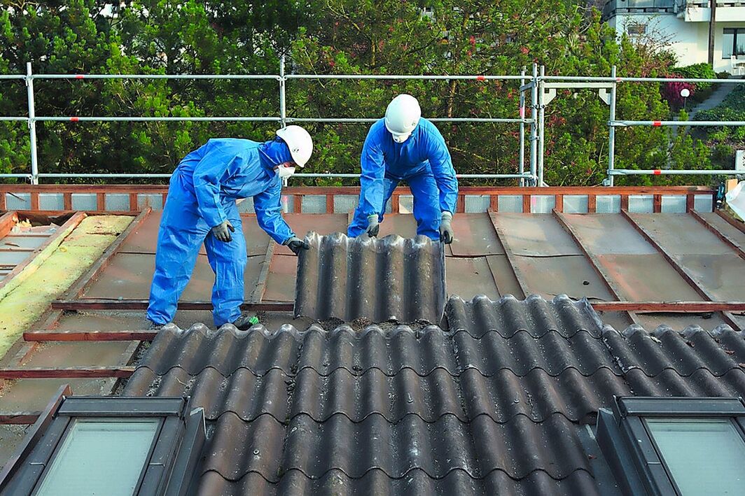 Bei Asbestverdacht – etwa bei Wellfaserplatten – braucht es beim Entfernen eine Schutzausrüstung. Bei diesen Arbeiten dürfen die Platten weder zersägt noch zerbrochen werden; es ist darauf zu achten, dass sie sorgfältig gelöst, vollständig vom Dach transportiert und fachgerecht entsorgt werden. Frei arbeitet mit erfahrenen Holzbauern und Dachdeckern zusammen, die die Entsorgung von asbesthaltigen Materialien bereits in die Offerte aufnehmen. Da die Entfernung länger dauert, ist die Arbeit auch etwas teurer.