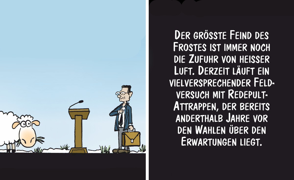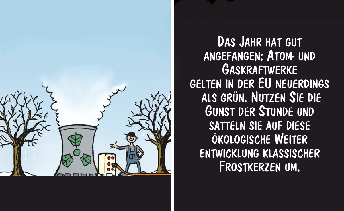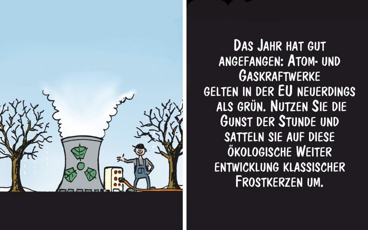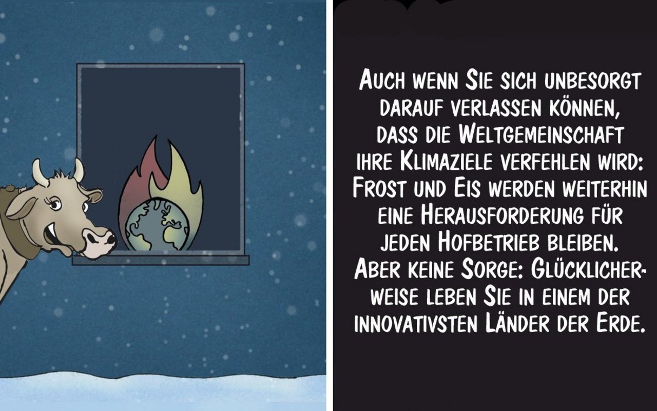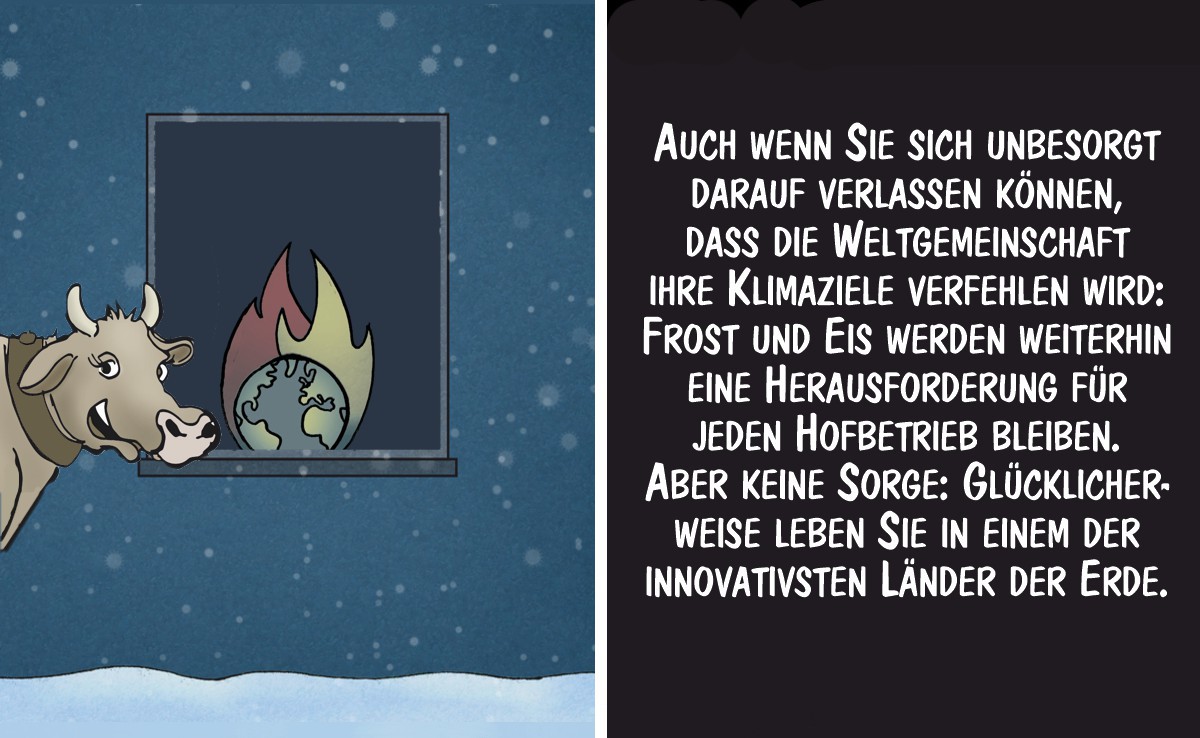 Keine Probleme mit Frost und Eis auf dem Hof: Cartoon von Marco Ratschiller/Karma