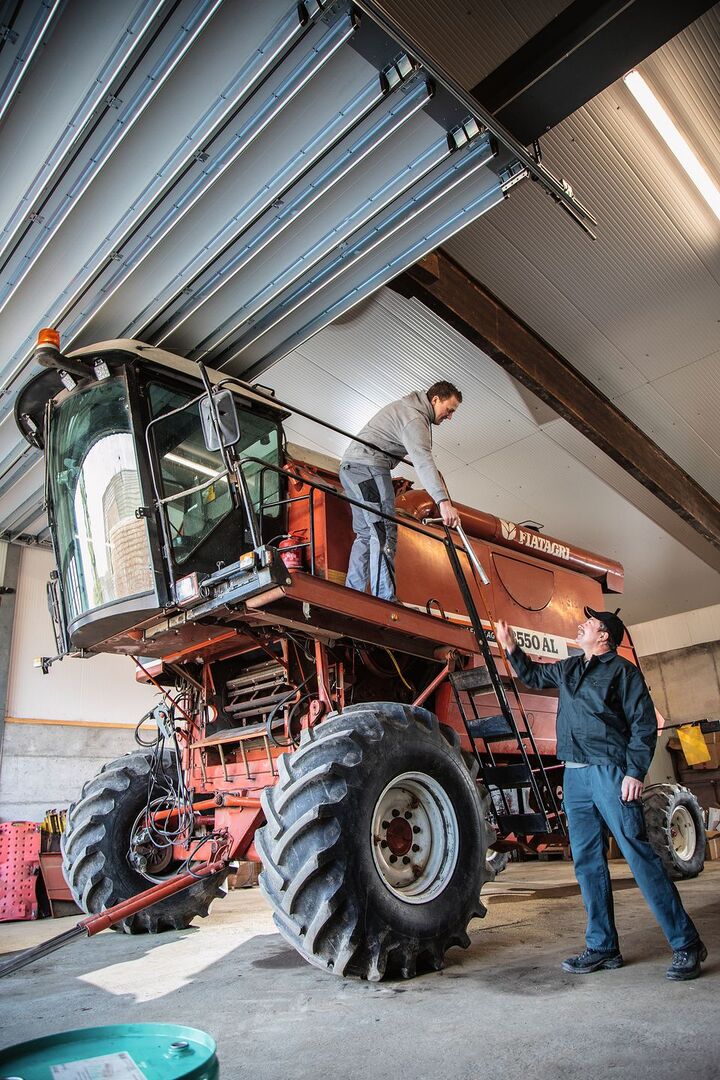 Kurz & bündig - Lorenz und Matthias Herren führen eine Generationengemeinschaft und kauften im Jahr 2021 wegen tiefen Fahrspuren einen eigenen Mähdrescher. - Der Laverda 3550 AL ist etwa halb so schwer wie heutige Drescher. Er hat jedoch weniger Leistung, wird aber vor allem im Eigengebrauch eingesetzt. - Wenn der Ackerboden nass ist, bewähren sich leichtere Erntemaschinen besonders gut. Matthias Herren wurde auf…