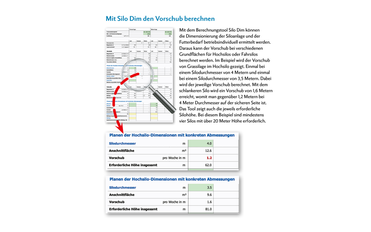 In einem fetten Silokübel kann Futter günstiger siliert werden, als wenn für das gleiche Lagervolumen mehrere Behälter aufgestellt werden. «Das ist eine Verlockung, der man widerstehen sollte, ein minimaler Vorschub ist immer einzuhalten», sagt René Bünter, Geschäftsführer der Schweizer Silovereinigung. Bei Hochsilos liegt die minimale Entnahmemenge bei 10 oder noch besser bis zu 20 Zentimetern pro Tag, was rund…