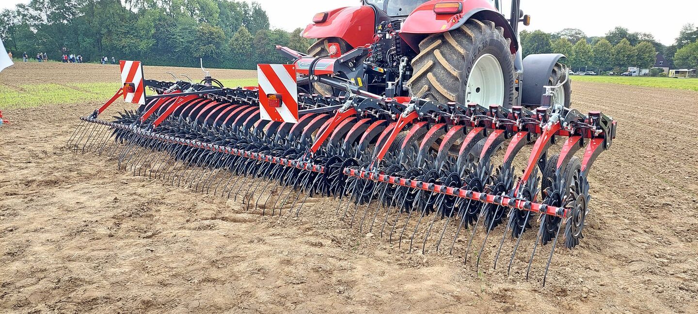 Neu gibt es das Pudama-System zur punktgenauen Düngerablage auch für die Einzelkornsämaschine Optima F. Diese kann mit dem Fronttank f-drill kombiniert werden. [IMG 1] Bei der Kreiselegge Rotago F kann die Arbeitstiefe dank Isobus-Variante jederzeit bequem von der Kabine aus angepasst werden. Das wird ermöglicht durch die geschobene Kreiseleggenwanne. [IMG 2] Durch die präzise Ablage der Düngerkörner direkt…