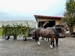 Nach dem offiziellen Teil zum Tag der offenen Hoftüren stieg Andreas Aebi in eine Pferdekutsche, mit welcher er die extra organisierte Gourmet-Tour im Gürbetal absolvierte. Fünf Betriebe aus der Region präsentierten entlang des Wanderweges zwischen Kaufdorf und Mühlethurnen den Besuchern an Marktständen ihre Hofprodukte – vom Quinoa-Salat über den hausgemachten Chabis-Salat (das Gürbetal ist traditionell ein «Chabis-Land») bis zur Schweinsbratwurst.