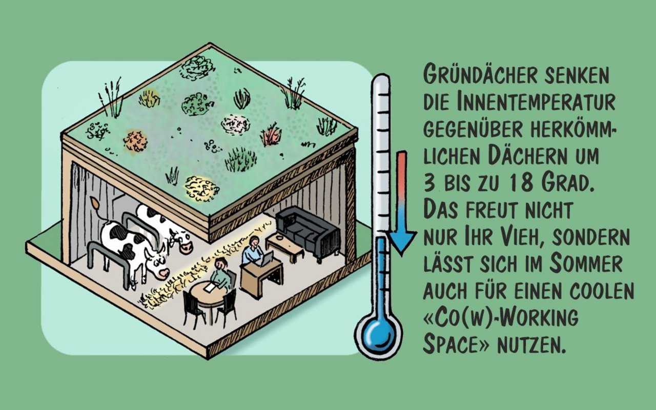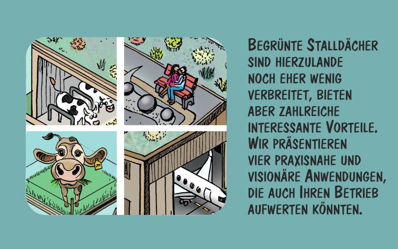 Wir zeigen vier praxisnahe und visionäre Anwendungen für begrünte Stalldächer. Hierzulande sind sie noch wenig verbreitet, bieten aber zahlreiche interessante Vorteile.