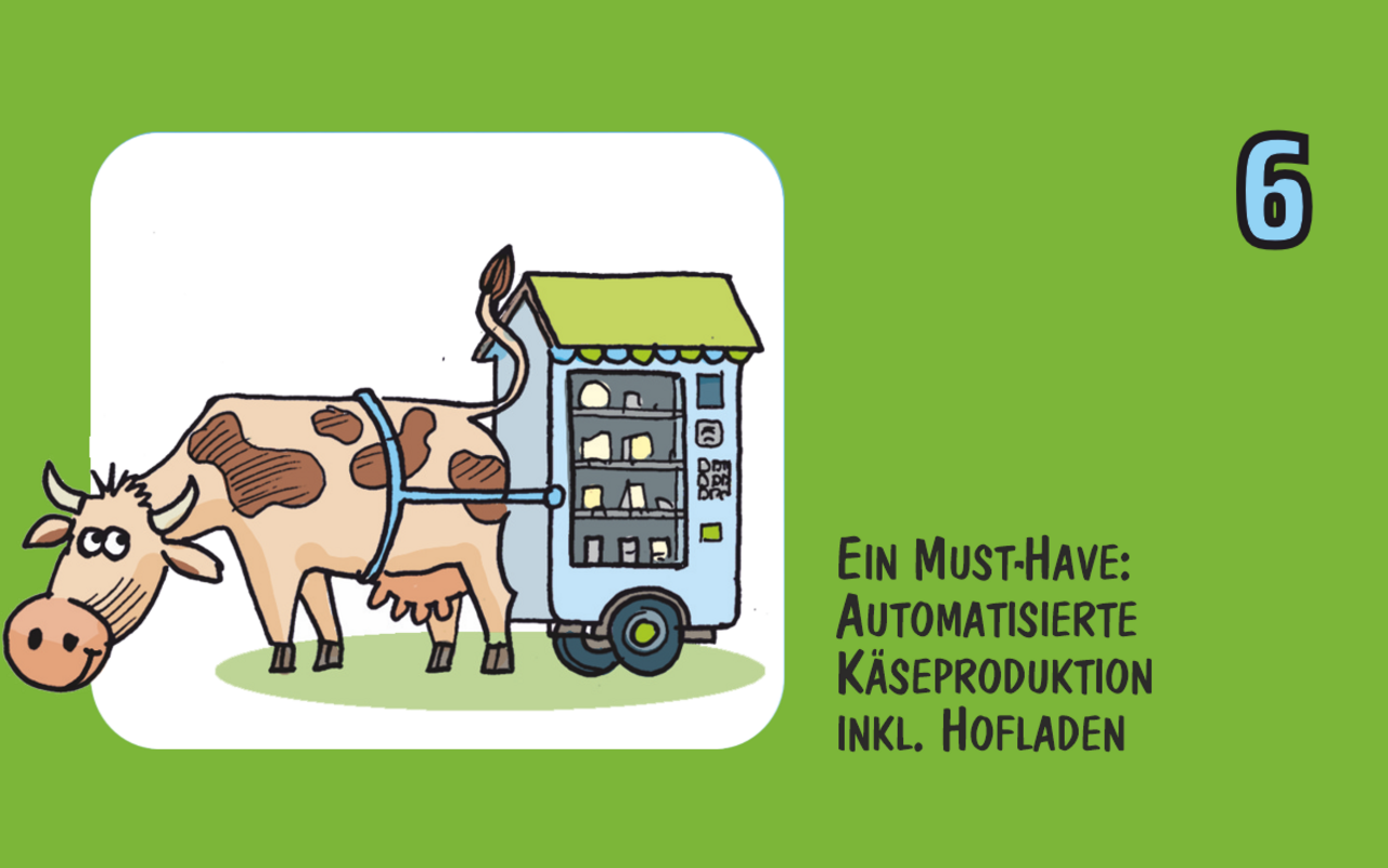 Cartoon von Marco Ratschiller/Karma: Energieautarke Viehhaltung