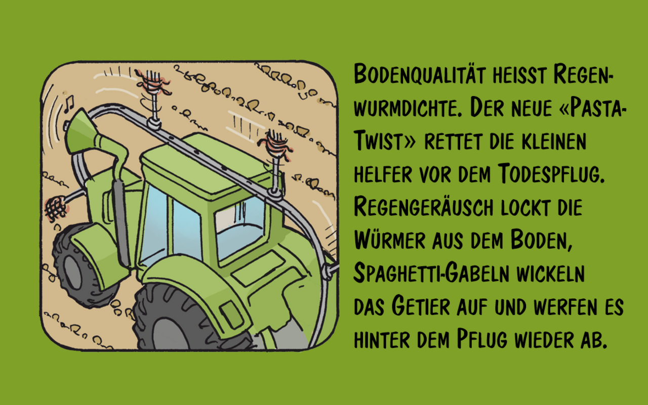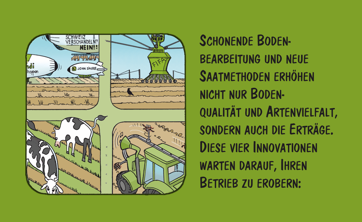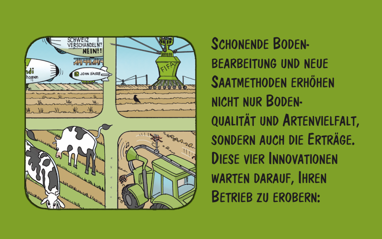 Cartoon von Marco Ratschiller/Karma: Innovationen für die Bodenbearbeitung