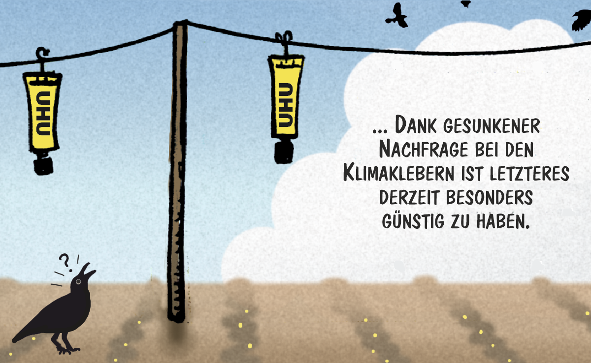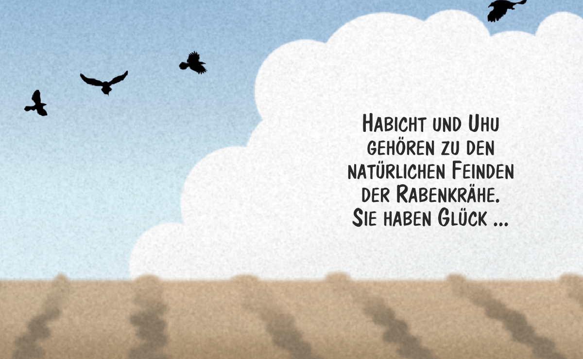 Cartoon von Marco Ratschiller/Karma: Unkonventionelle Ansätze gegen Krähen