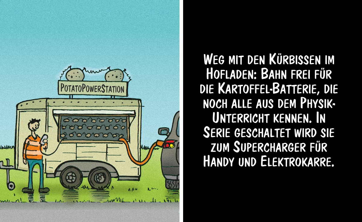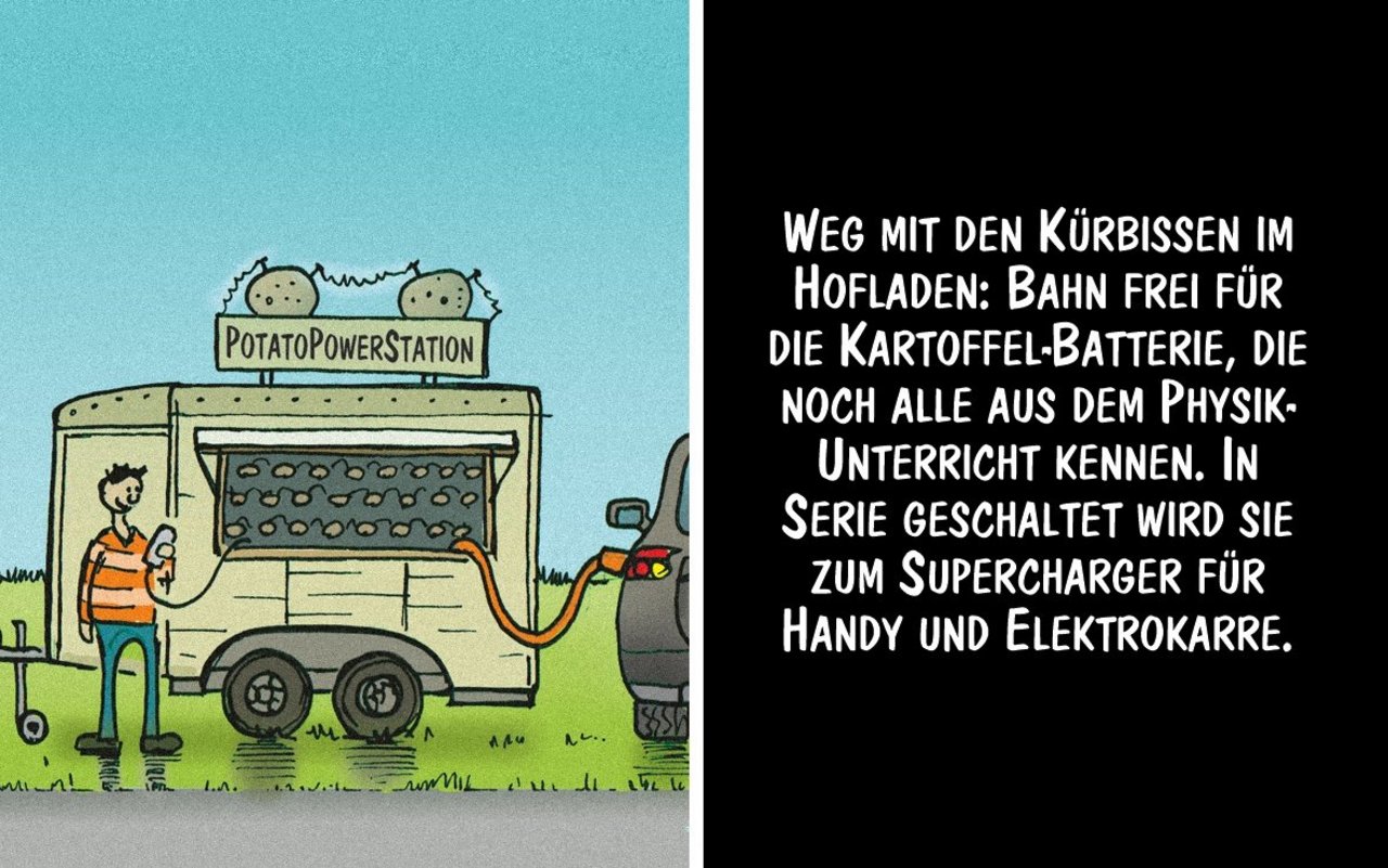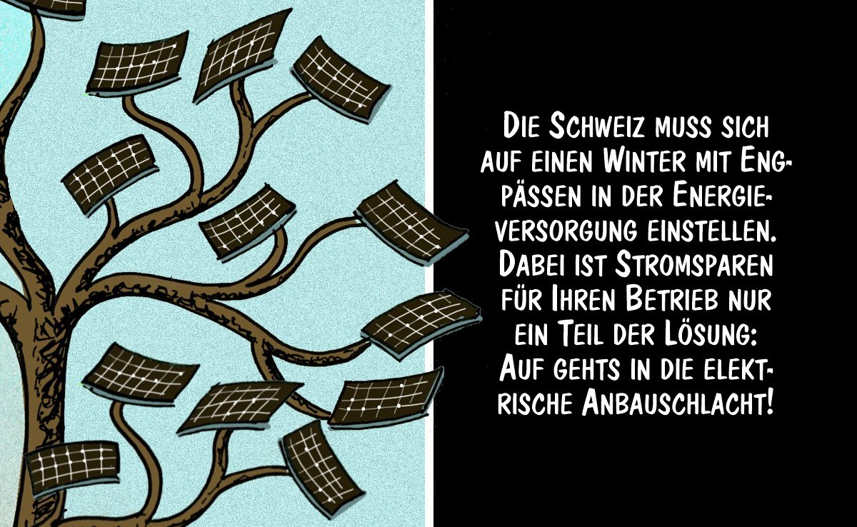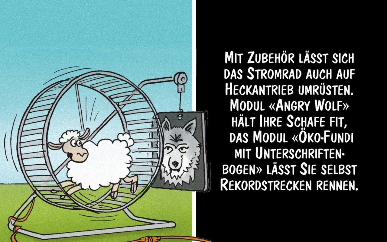 Cartoon von Marco Ratschiller/Karma zur elektrischen Anbauschlacht