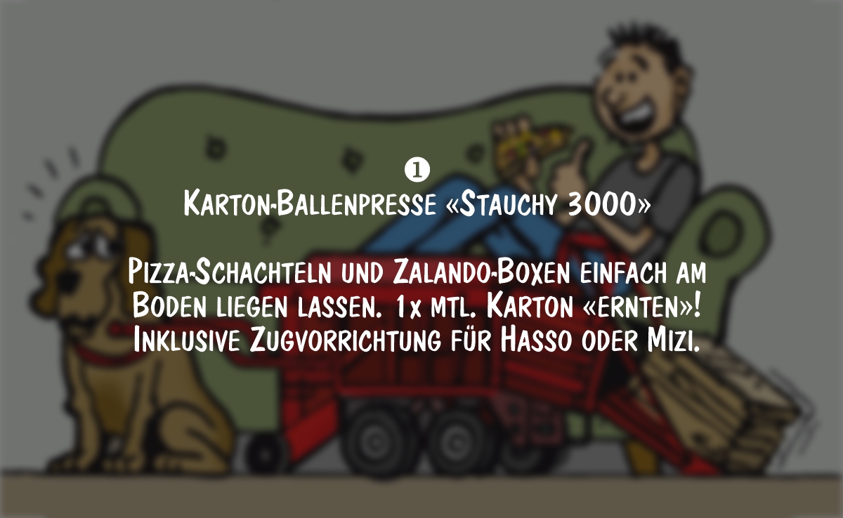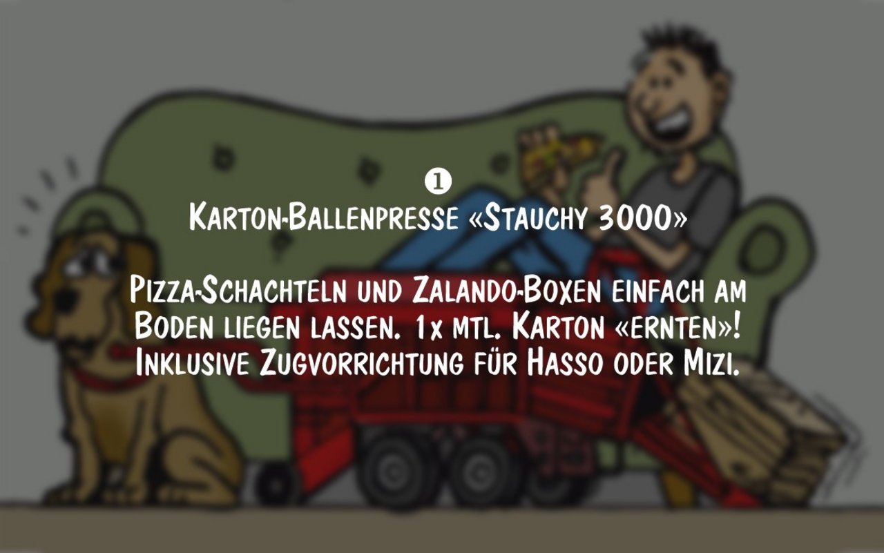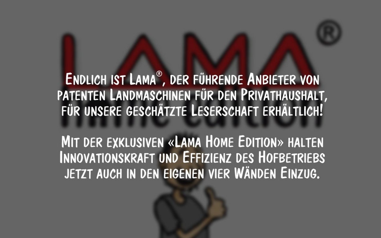 Marco Ratschiller/Karma bringt mit der «Lama Home Edition» Innovationskraft und Effizienz in den Privathaushalt. Wie wäre es mit einer Kartonballenpresse oder einem mobilen Silogebläse fürs unordentliche Wohnzimmer?