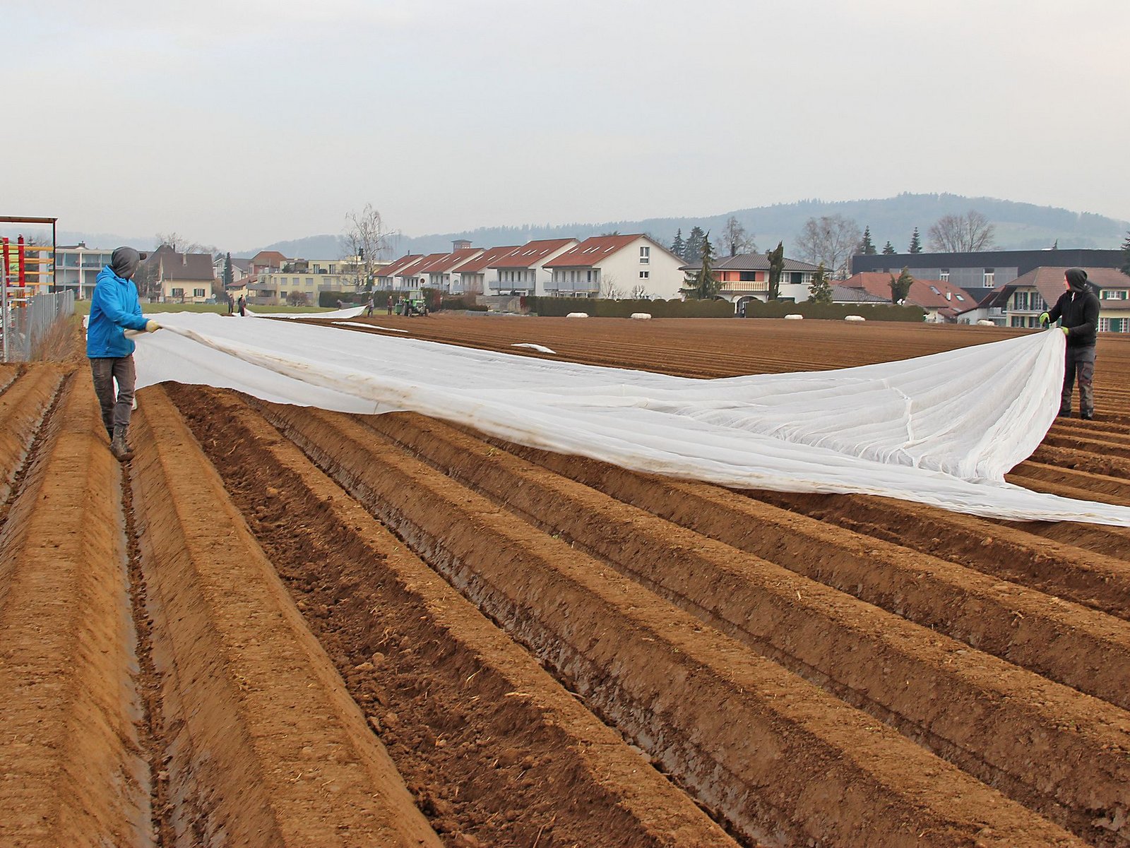 Kurz & bündig - Auf dem Lindenhof in Dottikon AGwerden Frühkartoffeln und Karotten unter Vlies angebaut. - Beim Vliesen muss sorgfältig gearbeitet werden, damit die Bedeckung auch bei Wind und Wetter hält. - Die Investitionskosten betragen gut 1000 Franken pro Hektare. - Zum Abrollen hat Beat Meyer eine Heckschaufel zweckmässig umgebaut. Bei Frühkartoffeln gibt es nur eine Devise: Richtig oder gar nicht», erklärt…