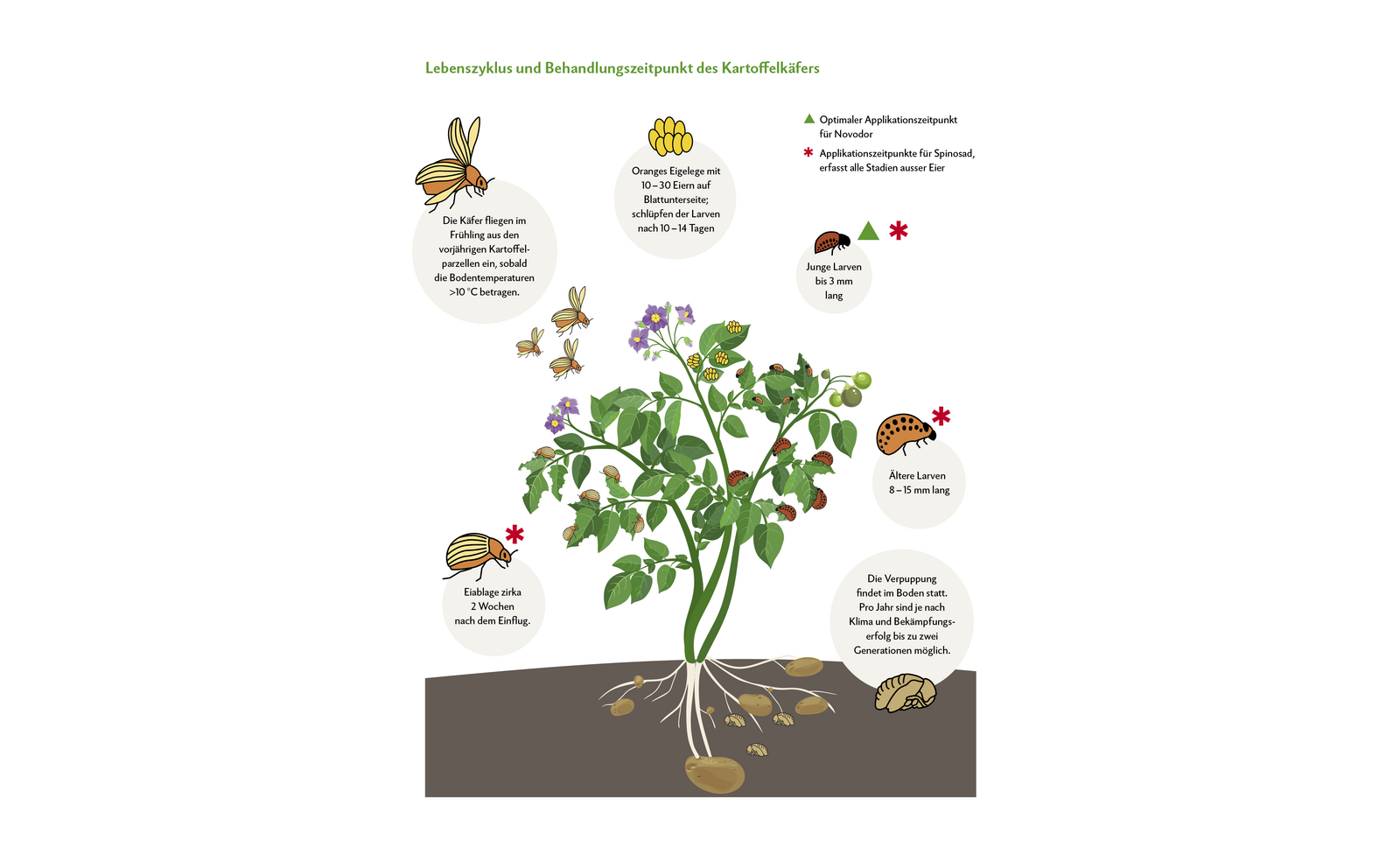 Kurz & bündig - Wenn Kartoffeln mit dem neuen Produktionssystembeitrag «Verzicht auf Pflanzenschutzmittel im Ackerbau» angebaut werden, ist der Einsatz von Spinosad verboten. Hier kann nur Novodor zur Bekämpfung des Kartoffelkäfers eingesetzt werden. - Beim Einsatz von Novodor ist der Applikationszeitpunkt sehr entscheidend. Am besten wirkt das Mittel auf kleine Kartoffelkäferlarven. - Die erfolgreiche Bekämpfung…