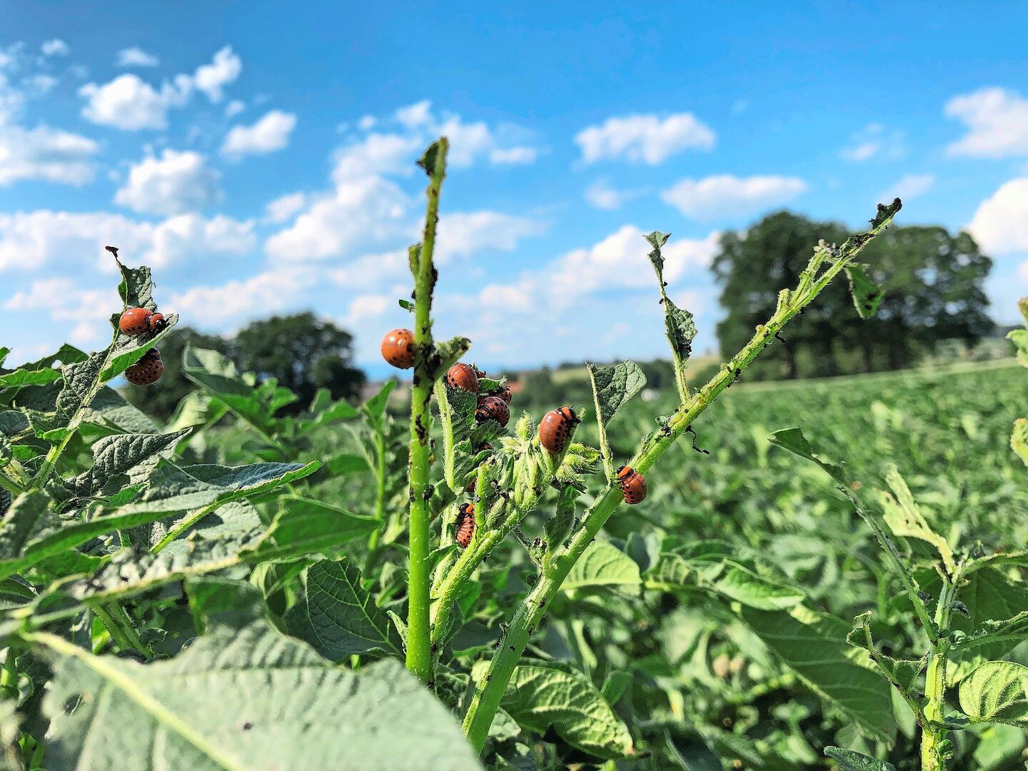 Sobald die Tages- und Bodentemperaturen über mehrere Tage hinweg 14 Grad oder mehr betragen, erwachen die Kartoffelkäfer aus ihrer Winterruhe und wandern in die umliegenden Kartoffelfelder ein. Mit dem Auflaufen der Kartoffelpflanzen erscheinen auch die ersten Käfer. Eine regelmässige Feldkontrolle einmal wöchentlich ist daher essenziell. Bereits zwei Wochen nach dem Auftreten der Käfer sind die ersten Eigelege sichtbar – ein bis zwei Wochen später schlüpfen die Larven. Je nach Klima und Höhenlage können die Käfer mehrere Entwicklungszyklen durchlaufen. In warmen Sommern und bei spätreifen Sorten drohen erhebliche Ertragsverluste.