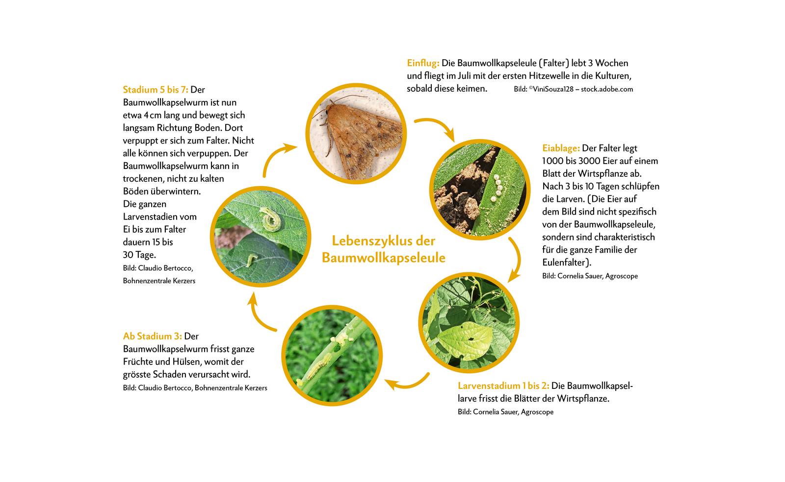 Kurz & bündig - Der Baumwollkapselwurm verursacht den grössten Schaden in den letzten Larvenstadien und befällt über 200 Pflanzenarten. - Für den Pflanzenschutz von Bohnen und Erbsen mit Hülsen wurde eine Notzulassung für ein Insektizid mit dem Wirkstoff Chlorantraniliprol befristet bis September 2024 erteilt. - Eine frühere Ernte bei Bohnen kann den Schaden in Grenzen halten, damit sinkt jedoch auch der Ertrag. Di…