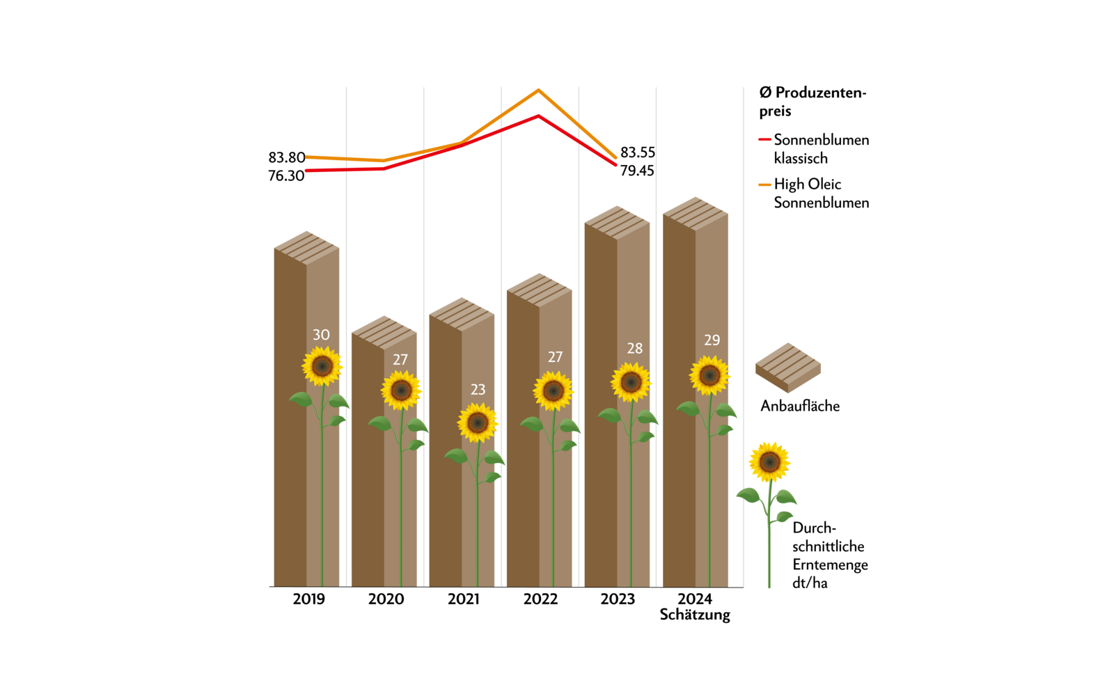 Trotz Ertragsschwankungen und des anspruchsvollen Schädlingsmanagements bleibe Raps eine finanziell interessante Kultur, so der SGPV. Die Vertragsmenge von 106 000 Tonnen sei für den Raps noch nicht erreicht. Dies ist auch für die Vertragsmenge an Sonnenblumen (26 000 Tonnen, davon 17 000 Tonnen High-Oleic-Sonnenblumen) der Fall. Weitere Anmeldungen und Flächenausdehnungen sind für beide Kulturen noch möglich.