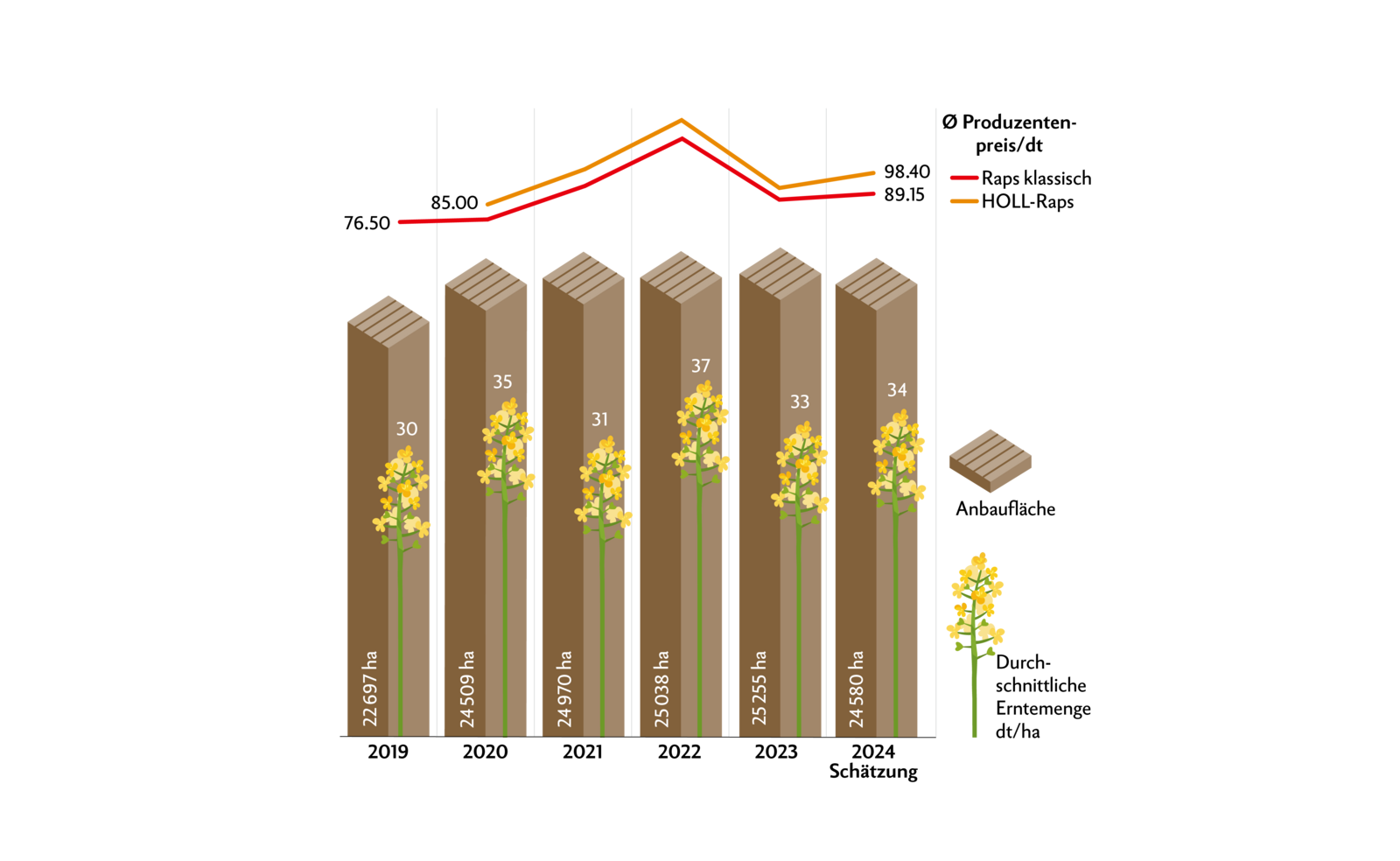 Wie der SGPV berichtete, könne für die Ernte 2024 tendenziell mit höheren Preisen als für die Ernte 2023 gerechnet werden. Der Aufwand für den Rapsanbau lohne sich also auch im nächsten Jahr. Für die Ernte 2025 konnte jedem Rapsproduzenten die gewünschte Menge zugeteilt werden.