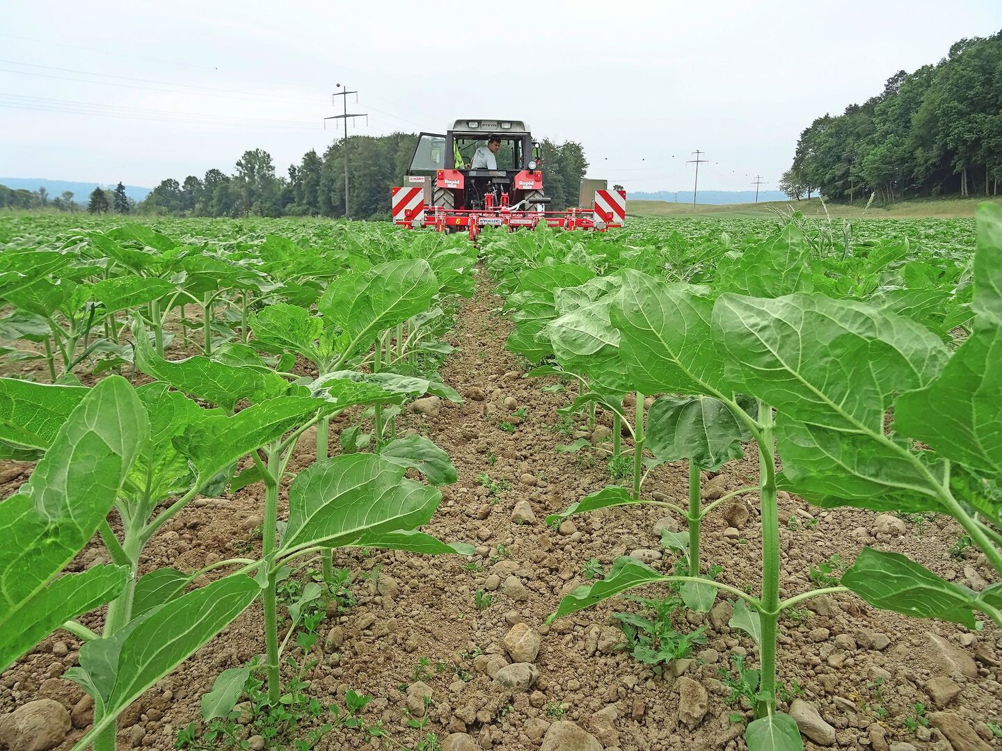 Der Einsatz von Fungiziden und Insektiziden ist im Sonnenblumenanbau meist nicht wirtschaftlich und der Anbau unter dem Produktionssystembeitrag PSB «Verzicht auf Pflanzenschutzmittel» gut umsetzbar. Es bleibt die Unkrautbekämpfung, oft mittels Vorauflaufherbizid. Dank weiten Reihenabständen kann die Unkrautregulierung auch mechanisch erfolgen, allenfalls in Kombination mit einer nach dem letzten Hackdurchgang eingesäten Untersaat. Diese unterdrückt eine Spätverunkrautung, verbessert die Tragfähigkeit des Bodens und berechtigt – je nach Fruchtfolge – zum PSB «Angemessene Bedeckung des Bodens».