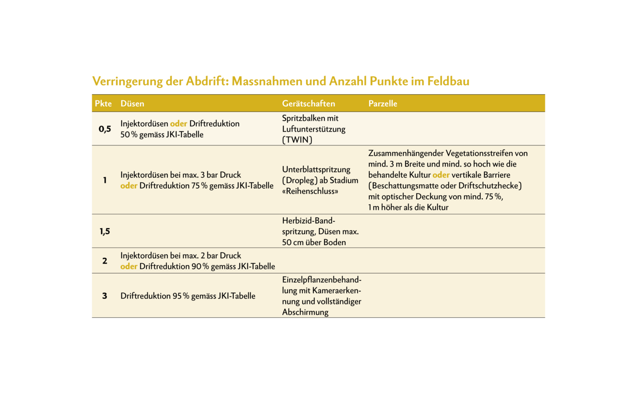 Kurz & bündig Im Juni 2024 wurde die Massnahmenliste aktualisiert – sanktioniert werden die Auflagen, Stand heute, ab 2025. Die Auflagen kommen aus zwei Verordnungen (DZV und PSMV). Die Massnahmen gegen Drift und Abschwemmung werden durch ein Punktesystem geregelt. Ziel: Risiko der PSM für Gewässer und Lebensräume bis 2027 um 50 % zu reduzieren. Im Webinar «Abschwemmung und Abdrift – Was gilt im Feldbau?»…
