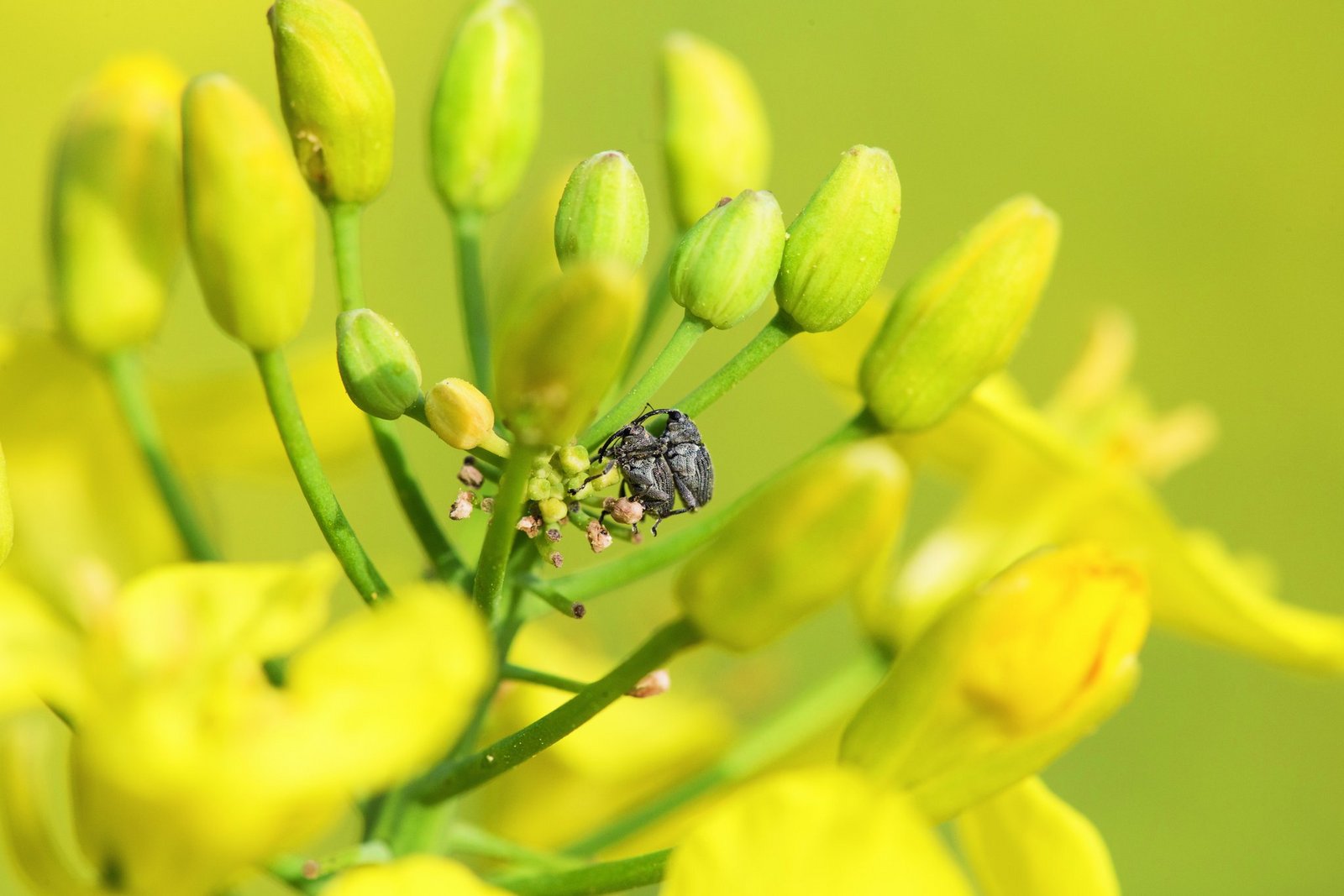Grosser Rapsstängelrüssler [IMG 2 3] Schadbild Frühling unterhalb der Triebspitze sind weissumrandete Einstichstellen der Eiablage sichtbar. Nach etwa zwei Wochen kommt es zu einer S-förmigen Krümmung der Stängel und bei empfindlichen Sorten platzen diese auf. Bedeutung des Schadens Ertragseinbussen bis zu 50 % bei stark geschädigten Pflanzen. In Gebieten mit wenig Raps seltener. Aussehen Käfer (Bild 1) ist 3,5–4…