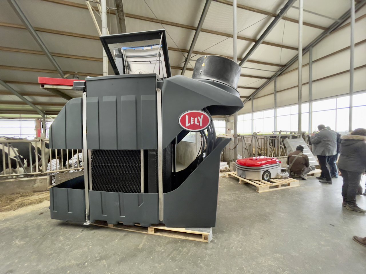 The Lely Sphere module vacuums off the urine’s gases from the barn