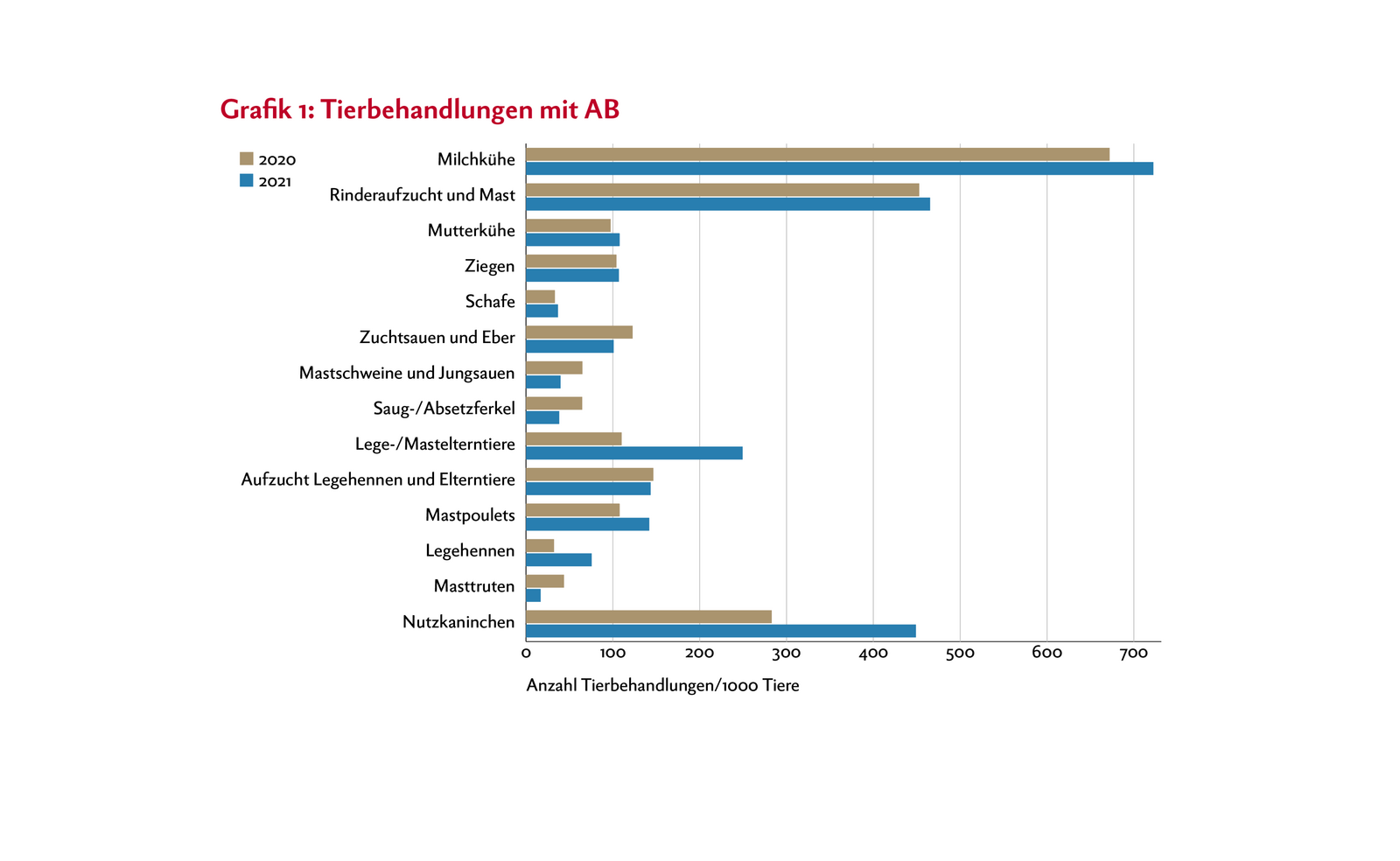 Kurz & bündig - Der zweite Bericht zum «Informationssystem Antibiotika in der Veterinärmedizin» IS ABV beruht auf Daten, die TierärztInnen 2021 erhoben haben. - In absoluten Zahlen werden die grössten Wirkstoffmengen bei Mastkälbern und Mastrindern eingesetzt. Im Bericht werden diese absoluten Zahlen jedoch in Relation zu den Populationsgrössen gesetzt. - Der beobachtete Rückgang der eingesetzten Antibiotika ist…