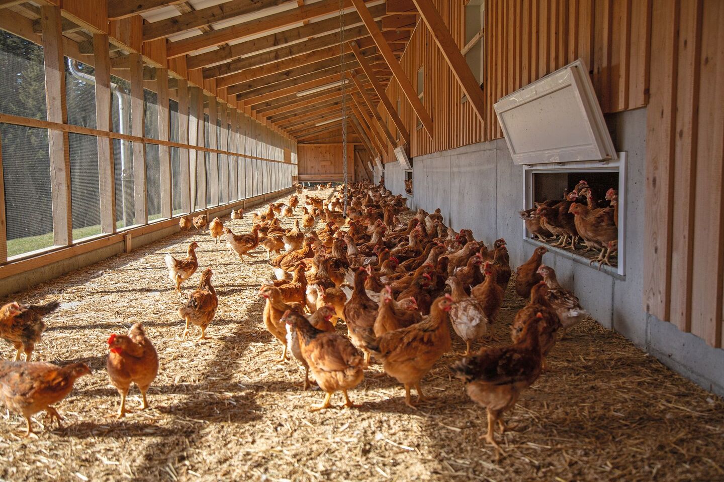 Kurz & bündig - Familie Stucki mästet seit acht Jahren Poulets für Bell (Coop). - Sie produzieren nach BTS und RAUS. Das bedeutet unter anderem, dass ihre Tiere im Stall und im Aussenklimabereich mehr Platz haben. Ausserdem haben sie Weidezugang. - Ruedi Stucki muss das Geflügel mit verschiedenen Massnahmen vor Greifvögeln und Füchsen schützen. - Gegen die Vogelgrippe musste er glücklicherweise noch nichts…