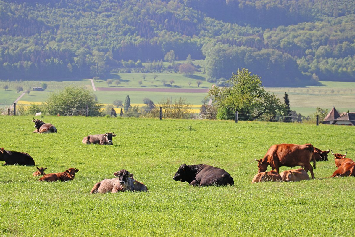 Es entspricht etwa drei Prozent der drei Millionen Tonnen CO2-Äquivalente, die gemäss Schweizer Treibhausgas-Inventar von der Rindviehhaltung verursacht werden. Dies, obwohl die Mutterkühe nur einen Sechstel der Schweizer Kühe ausmachen. Im Verhältnis zu den gesamten Treibhausgas-Emissionen im Inland macht das Rindvieh etwa 6 Prozent aus. Die Kohlenstoffbindung in den Graslandböden ist dabei nicht eingerechnet.