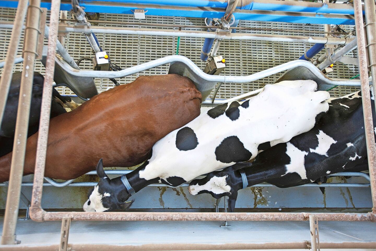 Nach der neuen Erfahrung des Kalbens kommt neu auch das Melken dazu. In einem Anbindestall ist es sinnvoll, dass die hochträchtigen Rinder bereits neben laktierenden Kühen stehen, damit sie sich an die Schläuche und die Geräusche der Melkmaschine gewöhnen. Zudem erschrecken junge Rinder beim ersten Melken weniger, wenn sie bereits seit dem Kälberalter an allen Körperstellen, inklusive Euter, regelmässig berührt wurden.
