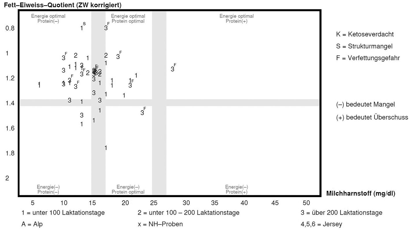 Bei der Milchleistungsprüfung MLP werden Fett- und Eiweissgehalt, Laktose- und Harnstoffwerte und weitere Parameter im Labor gemessen. Die Daten dienen den Zuchtverbänden als wichtige Information für die Zuchtarbeit. LandwirtInnen erhalten die Milchleistungsdaten ihrer Kühe ebenfalls. Auf der bisherigen 9-Felder-Tafel kann der Landwirt auf einen Blick sehen, ob er seine Kühe richtig füttert oder ob…