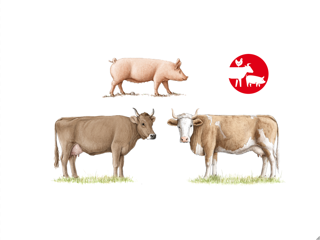 Aus der Vielfalt der in der Schweiz gezüchteten Nutztier-Rassen gelten heute 38 als Schweizer Rassen.