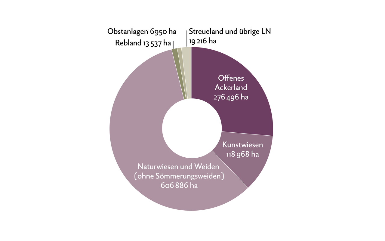 Wieviel Boden hat die Schweiz? Die Fläche der Schweiz wird meistens mit 4'128'500 ha angegeben. Das ist gemäss dem Bundesamt für Landestopografie swisstopo richtig. Doch: Berechnet man die Fläche aus den genauen Daten von swisstopo, erhält man 4'129'100 ha. Davon sind – ohne Sömmerungsflächen – 1'452'500 ha Landwirtschaftsfläche. Alpwirtschaftsflächen machen zusätzliche 503'300 ha aus. Quelle: swisstopo und Areals…