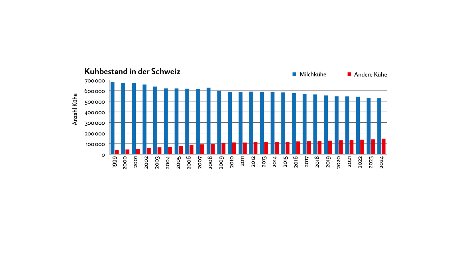 Der Entscheid, von Milch auf Fleisch umzusteigen, fiel bei der Familie Clavadetscher über Umwege: Nach Gesundheitsproblemen der intensiv gehaltenen Milchkühe, einem Versuch mit Schafhaltung und Ochsenmast entschied das Paar, auf Mutterkühe zu setzen. Sie leisteten damit Pionierarbeit und nahmen Entwicklungen vorweg: In der Schweiz sinkt die Anzahl der Milchkühe seit vielen Jahren.