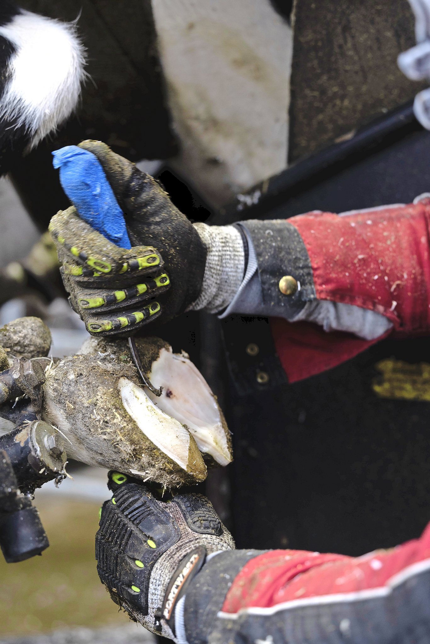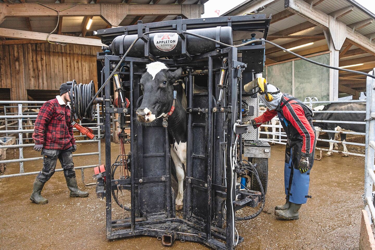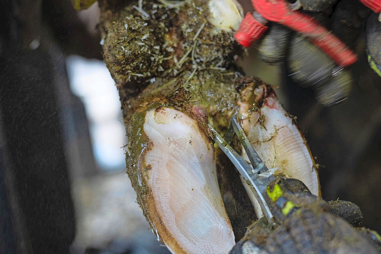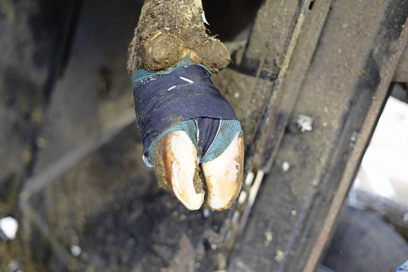 Suter kontrolliert den Zwischenklauenspalt und entfernt bei Bedarf die Ballenfäule.