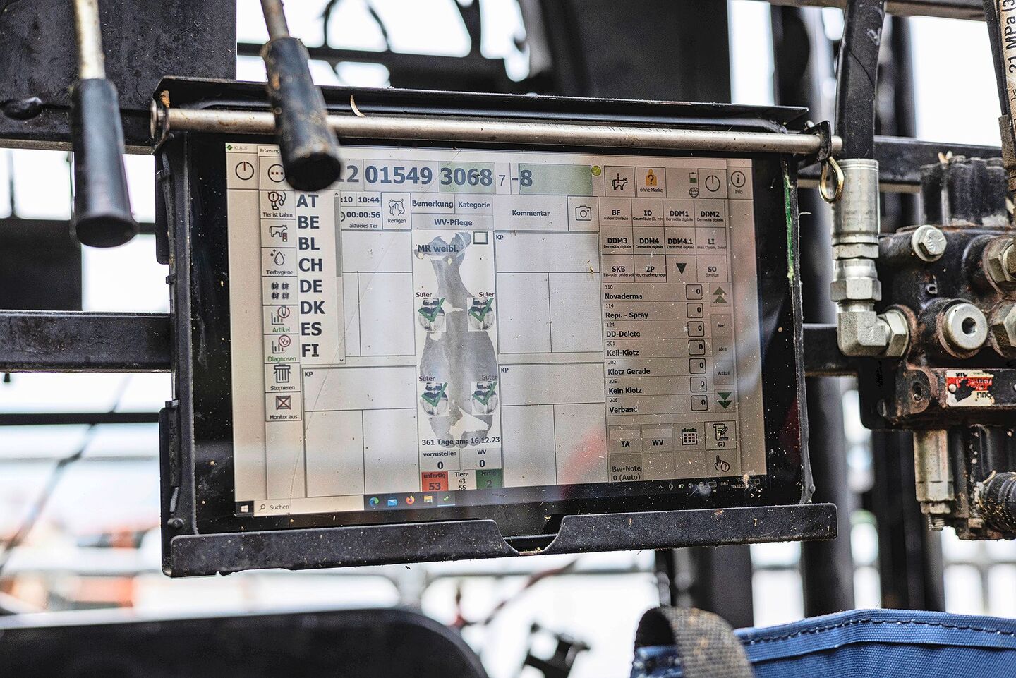 Der Monitor, welcher am Klauenstand integriert ist, dient zur digitalen Dokumentation von Klauenerkrankungen.