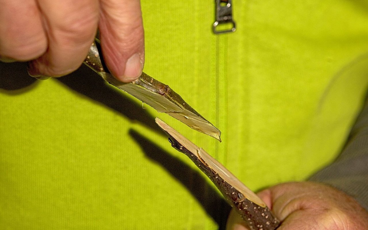Das Kambium ist entscheidend, damit die beiden Stücke gut zusammenwachsen. Deshalb liegt Kambium auf Kambium.