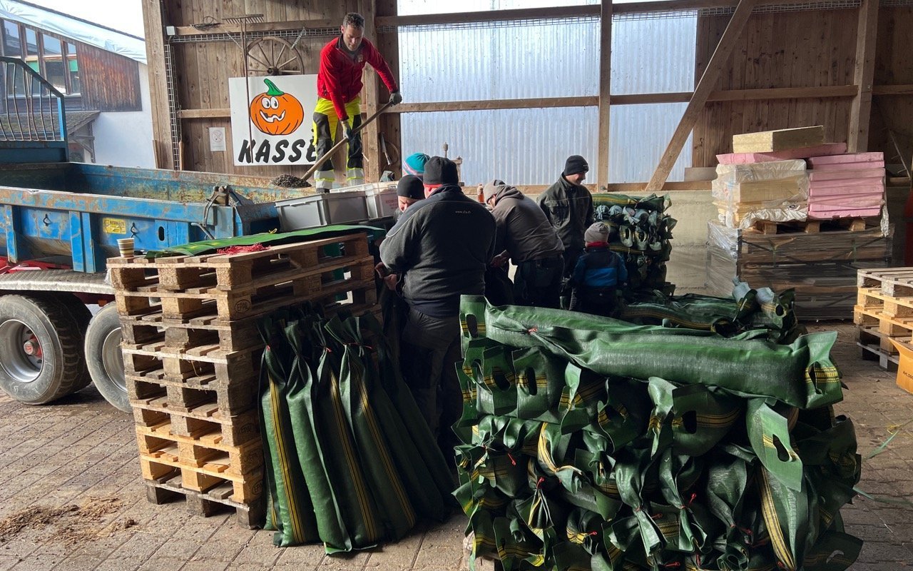 Am 29. Januar werden weitere 700 Sandsäcke für den Kürbisanbau mit Sand gefüllt.