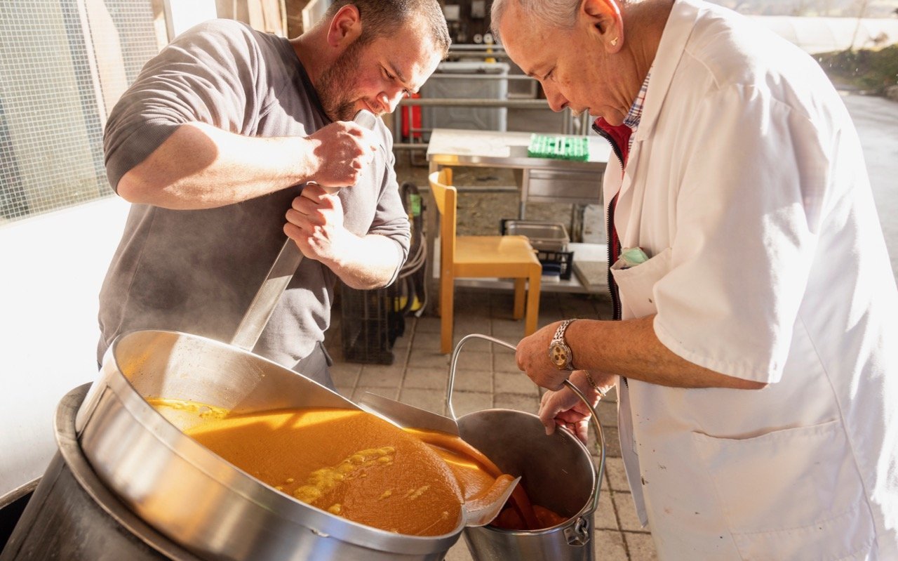 Am 31. Januar kochten Serge Duperrex und Marcel Rinderli gemeinsam mit Maya Duperrex Kürbissuppe.