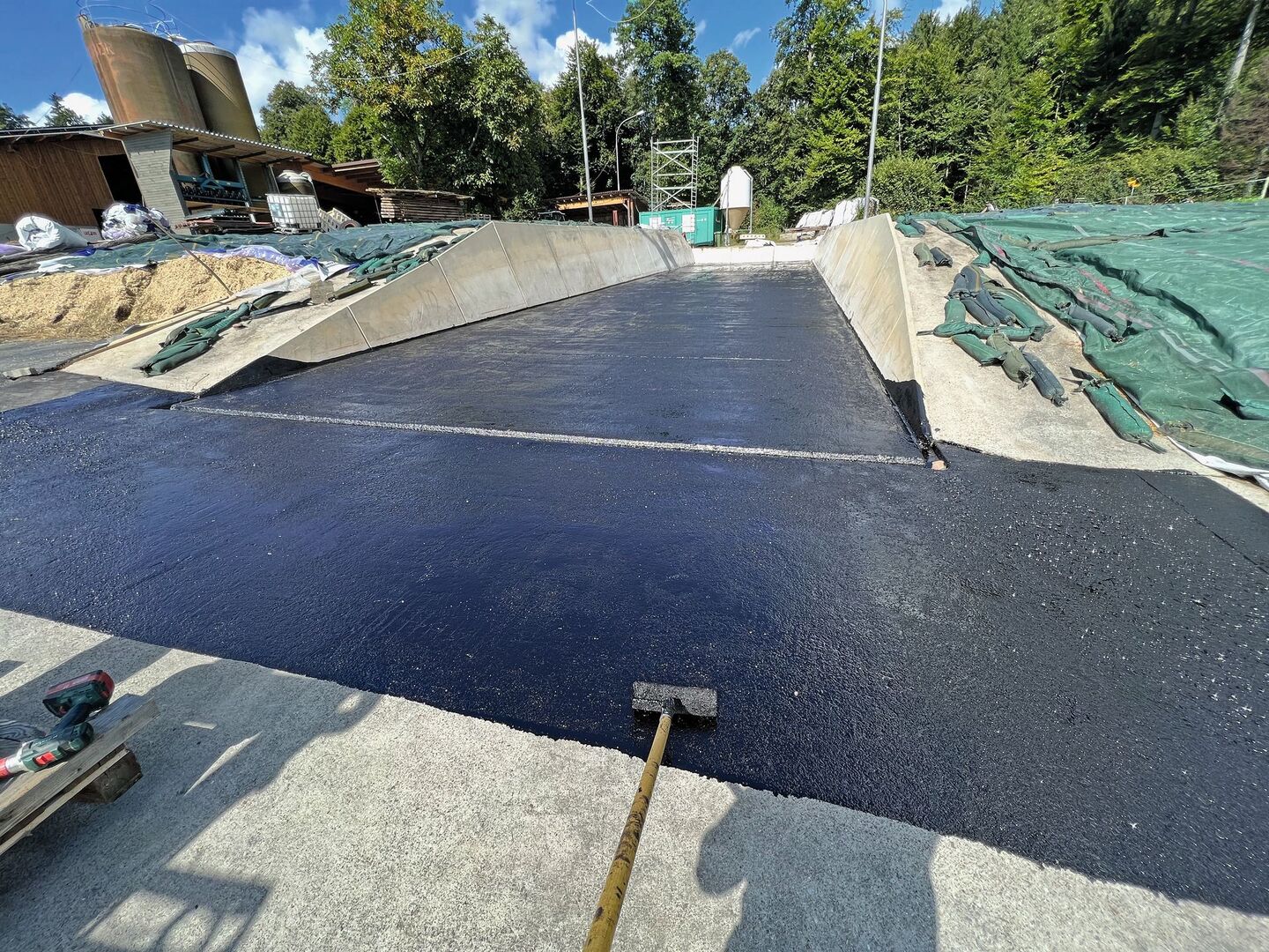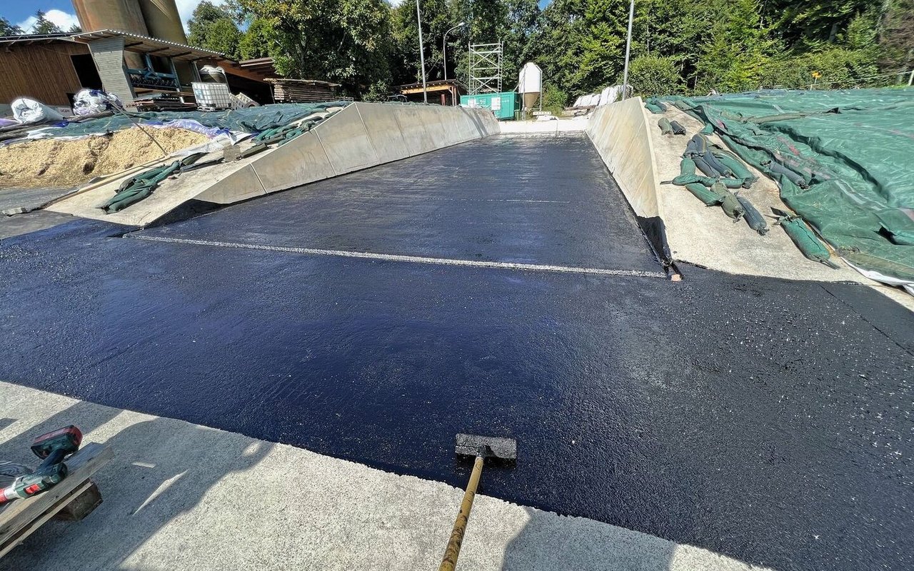 Am Sonntag, 11. September hat Familie Duperrex den Boden des Fahrsilos gestrichen, damit die Farbe genügend Zeit hat, trocken zu werden, bis der Mais siliert wird.