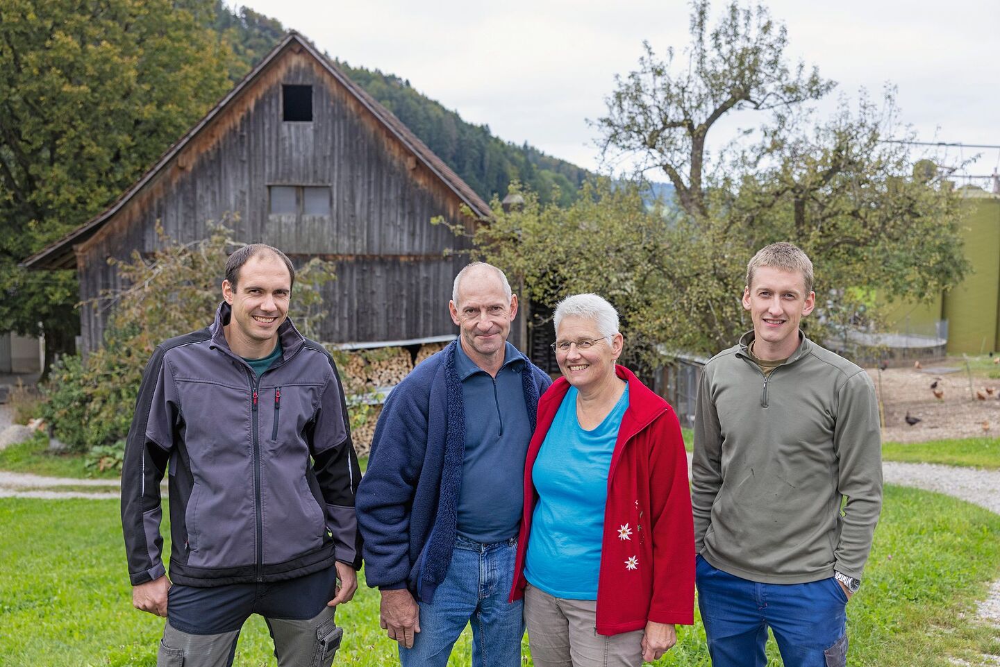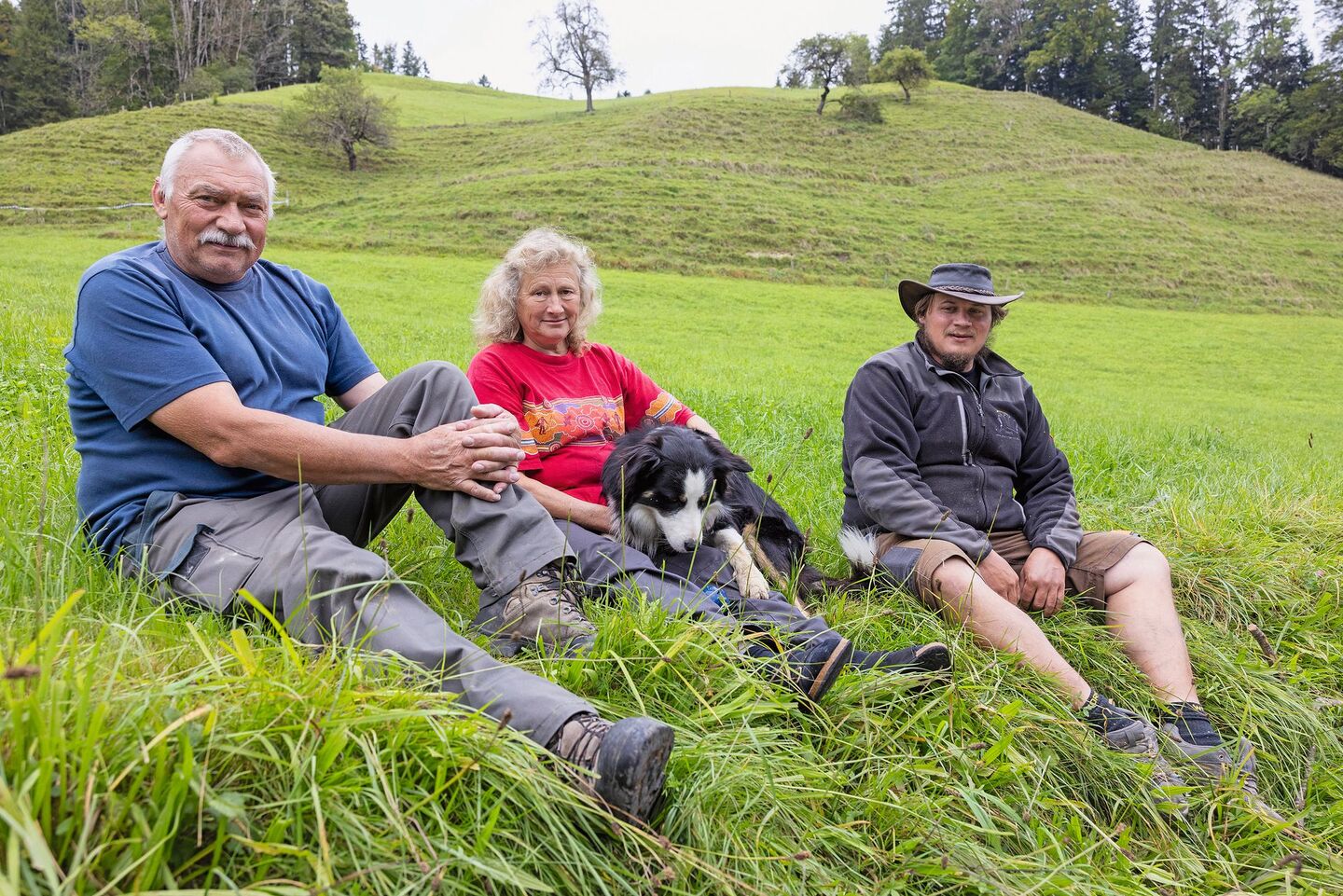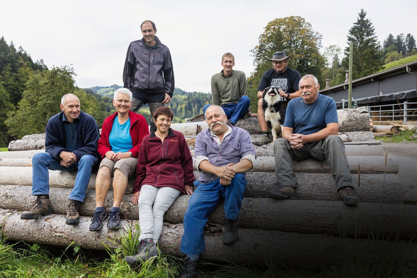 Kurz & bündig - Drei Familien halten ihre Milchkühe gemeinsam in einer Betriebszweiggemeinschaft. - Jede Partei hat ihren Aufgabenbereich. Rüeggs melken die Kühe, Sudlers schauen zum Jungvieh und Schmids helfen überall aus. - Diskutiert wird wenig, die Landwirte sind sich meist einig. - Seit der Gründung im Jahr 2002 hat sich einiges geändert. Aktuell steht die Hofübergabe bei der Familie Rüegg an. Hügel und Wald…