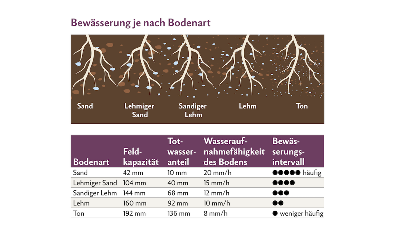 Glossar Feldkapazität (FK): Der Wassergehalt, den ein zuerst wasser-gesättigter Boden nach zwei bis drei Tagen noch halten kann. Totwasseranteil (TW): Dieses Wasser befindet sich in sehr kleinen Poren und kann von Pflanzen nicht aufgenommen werden. Denn je kleiner die Pore, desto grösser muss die Saugkraft sein, die die Pflanzen nicht endlos steigern können. nutzbare Feldkapazität (nFK): Das ist der Wasservorrat…