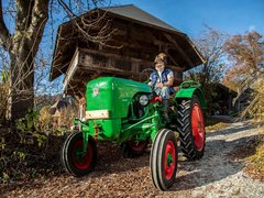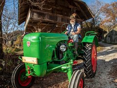 «Das ist der erste Traktor, der vom Grossvater auf den Betrieb geholt wurde. Vor diesem Traktor wurden alle Arbeiten noch mit Pferden ausgeführt. Der Traktor war viele Jahre in einem ziemlich desolaten Zustand und wurde 2020 restauriert und wieder geprüft. Der Traktor wird heute ab und zu noch am Kreisheuer eingesetzt. Der primäre Verwendungszweck ist aber heute die Teilnahme an Oldtimer-Treffen, sobald Corona vorbei ist und diese wieder stattfinden können.»