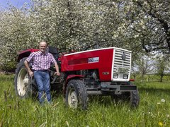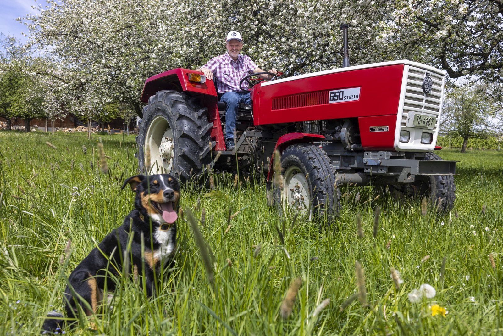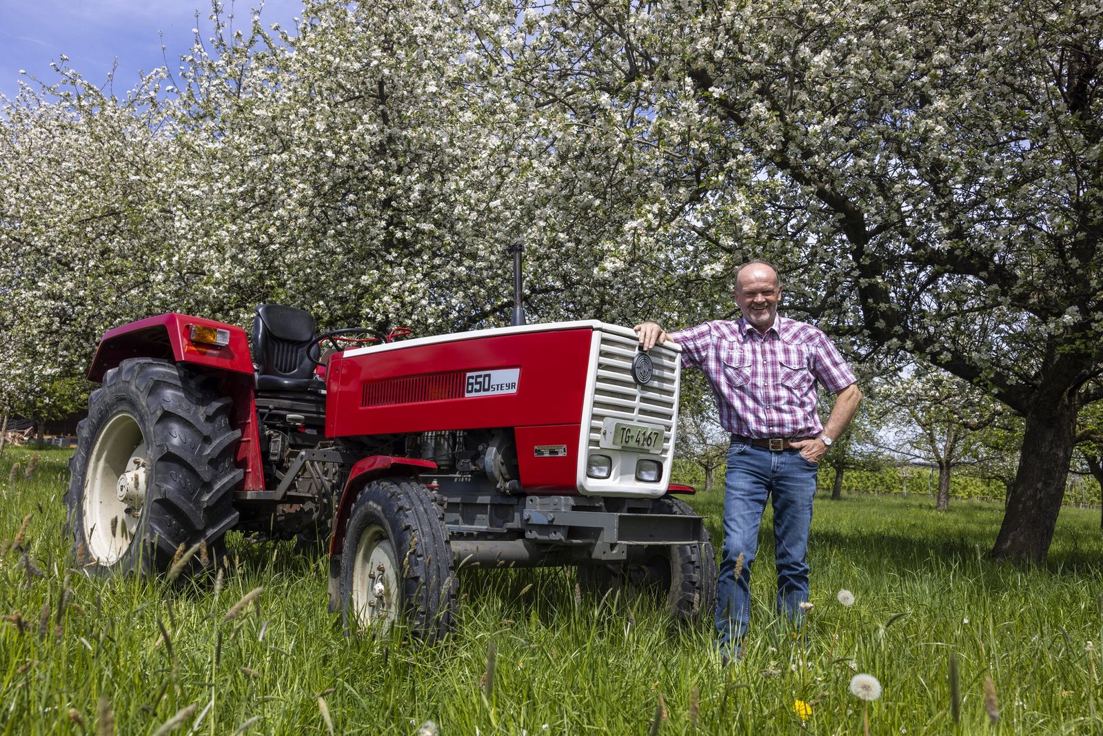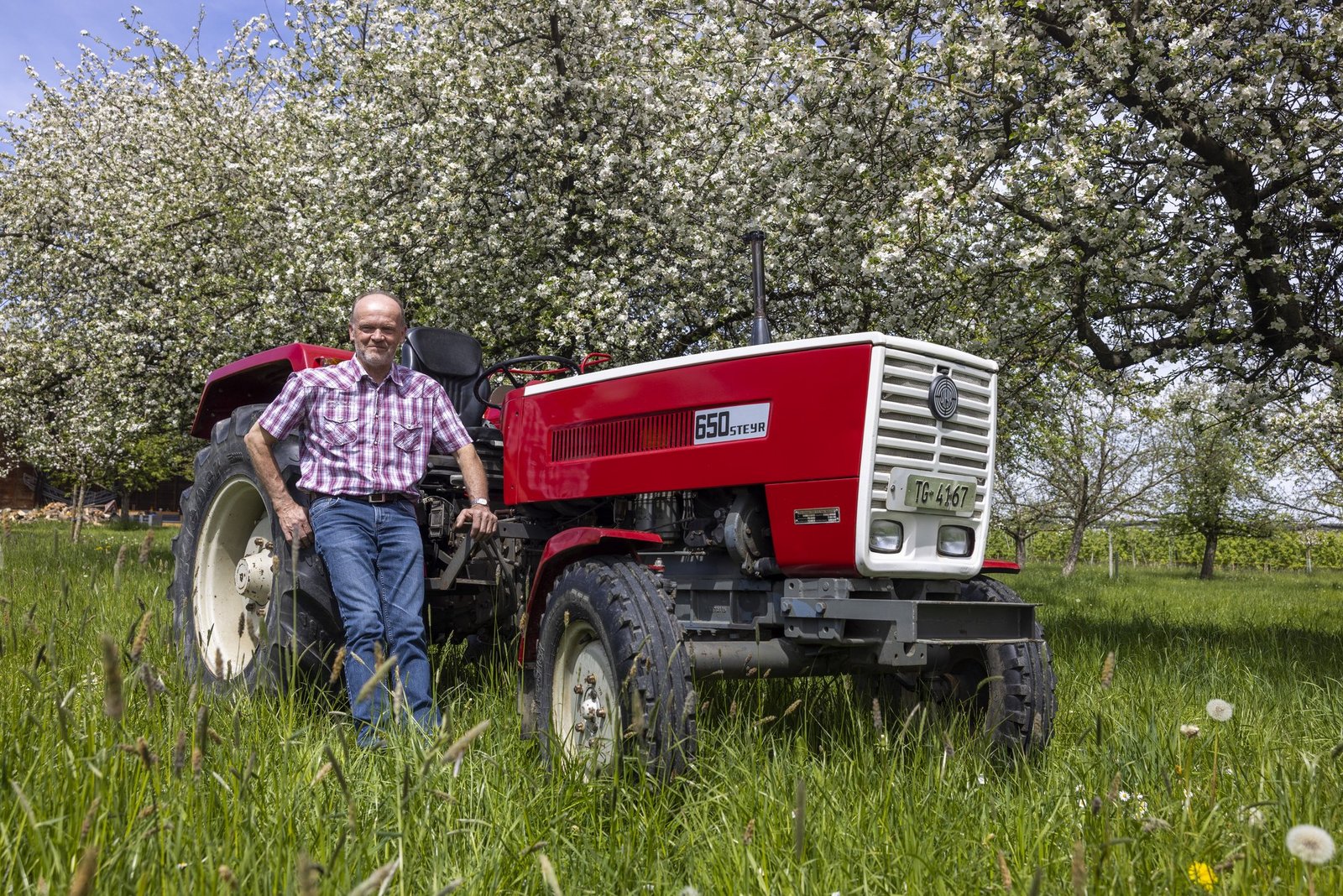 Urs Schär (62) ist Meisterlandwirt aus Langrickenbach TG: «Auf unserem gemischten Betrieb haben wir Milchwirtschaft, Tafelbirnen, Tafeläpfel, Hochstämme für Mostobst und Ackerbau zur Futterproduktion für unsere Milchkühe. Seit 1974 darf ich Traktor fahren, seither haben haben wir den Steyr 650. Er ist mein TraumTraktor, weil er vielseitig einsetzbar ist. Zudem hat er ein gewisses Extra: Der Schnellgang mit einer Geschwindigkeit von 35 km/h, war 1974 eine Sensation.