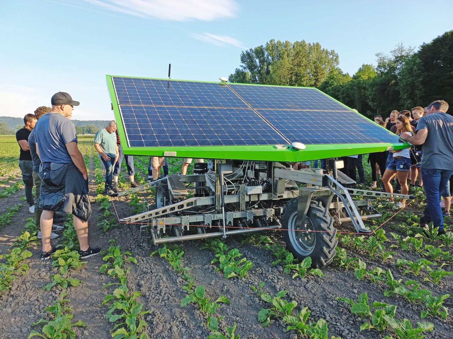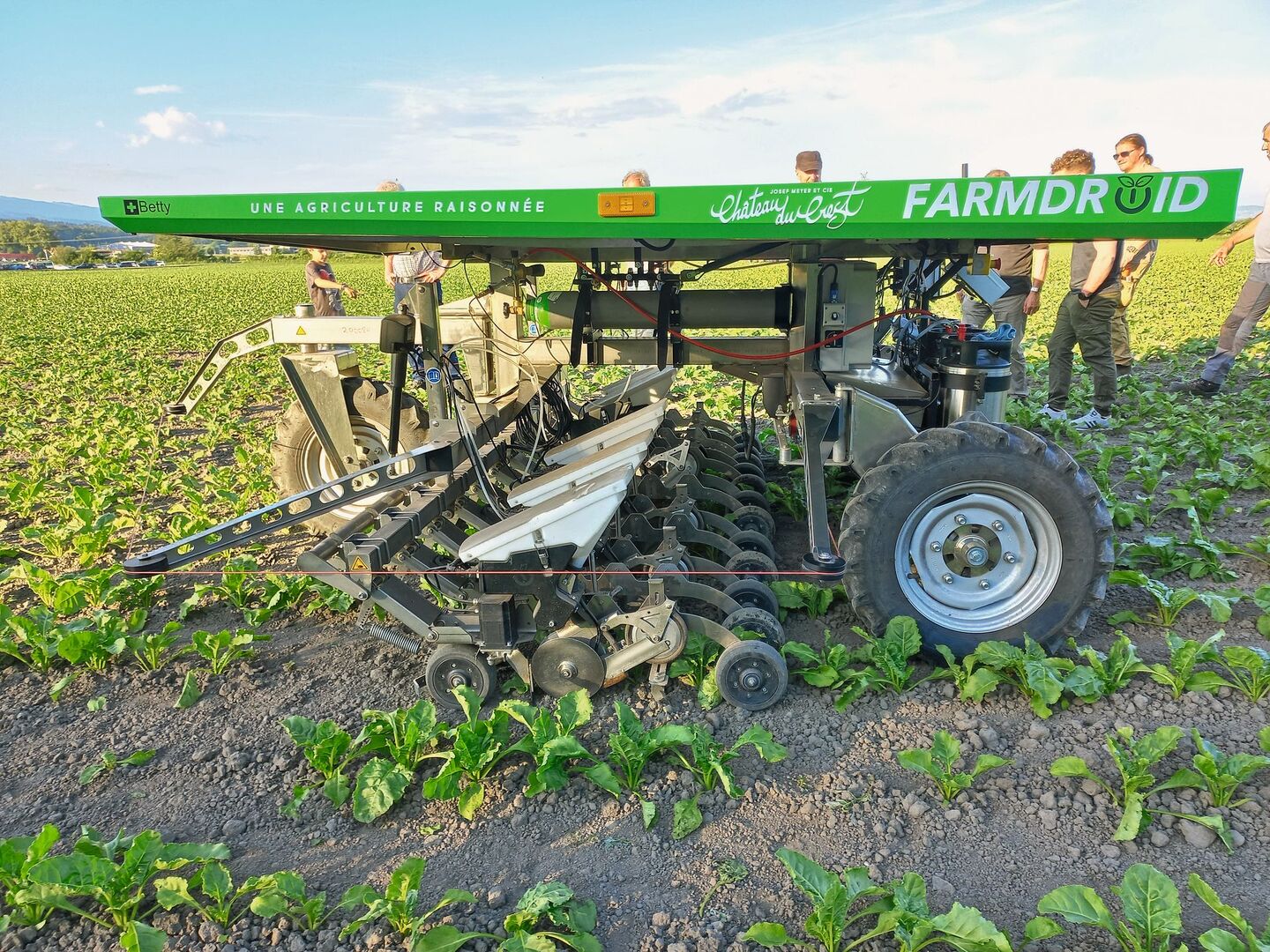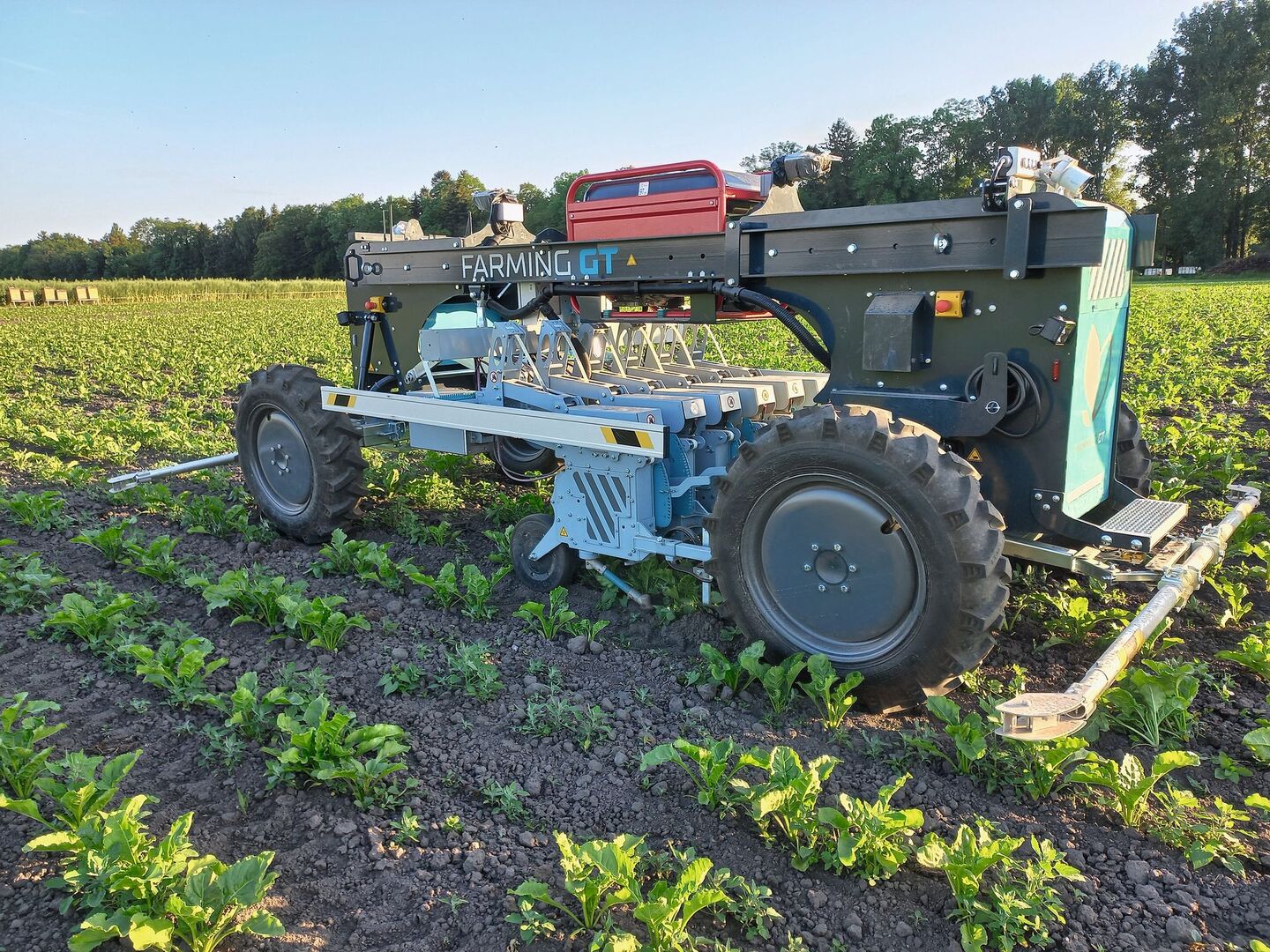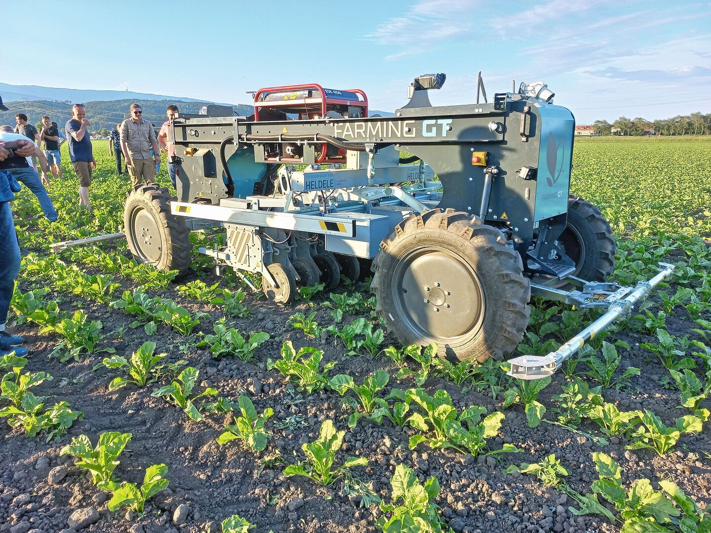 Zwei autonome Hackroboter der neusten Generation im Praxiseinsatz. Auf 10 ha Bio-Zuckerrüben am Tannenhof in Gampelen BE mussten sich die Roboter beim Säen und Hacken beweisen. [IMG 1] Der Farming GT wird von der Firma Farming Revolution GmbH in Deutschland hergestellt. Er wurde von KWS für Versuche gemietet und ist das erste Jahr im Einsatz. [IMG 2] Der Roboter erkennt die Rüben mittels Kamera. Mit dem…