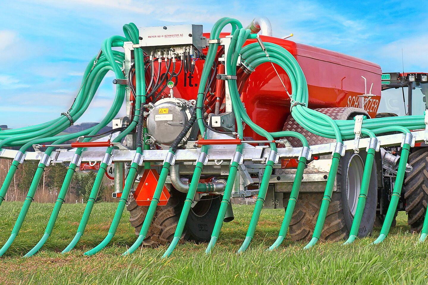 Kurz & bündig - Der Schweizer-Pumptankwagen namens «Top-Line» der Meyer Gruppe wurde neu entwickelt. - Das Fahrwerk und die Tankform sind optimal aufeinander abgestimmt. - Der modulare Aufbau ermöglicht diverse Fassvolumen und einen tiefen Schwerpunkt. - Verschiedene Pumpensysteme werden angeboten. - Nebst dem direkten Ausbringen mit dem Verteilergestänge kann Gülle vom Feldrand oder ab der Grube auf das Feld…