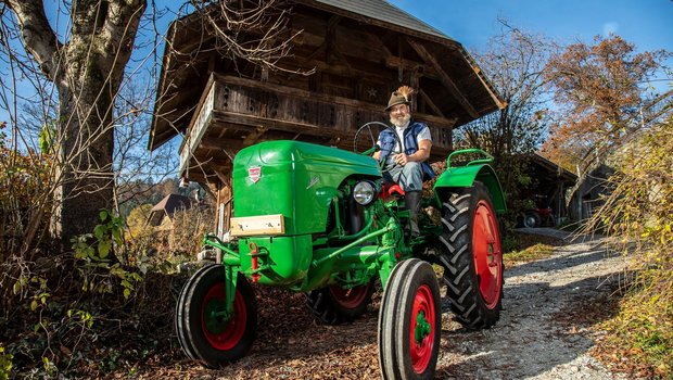 Landwirt Ernst Schmid schätzt seinen Lanz Bulldog, weil er ihn früher für alle anfallenden Arbeiten einsetzen konnte. Heute macht er damit Sonntagsausfahrten.