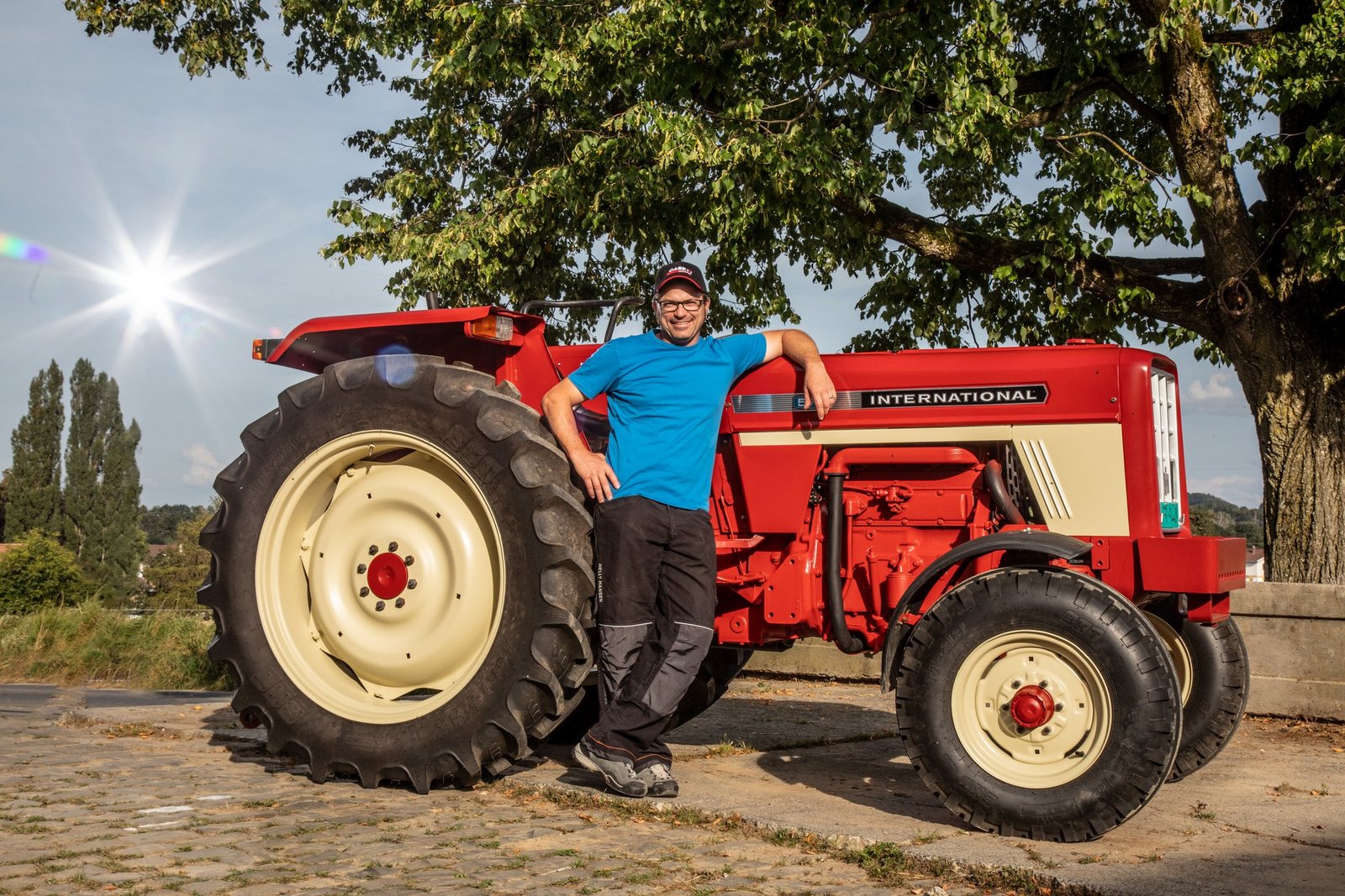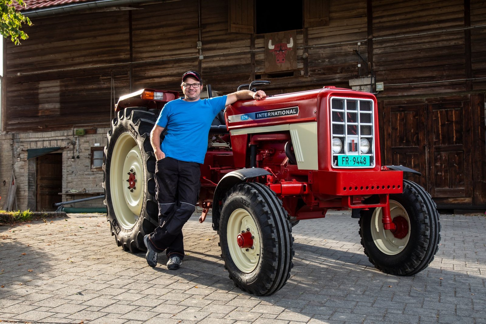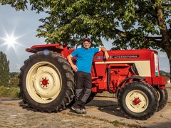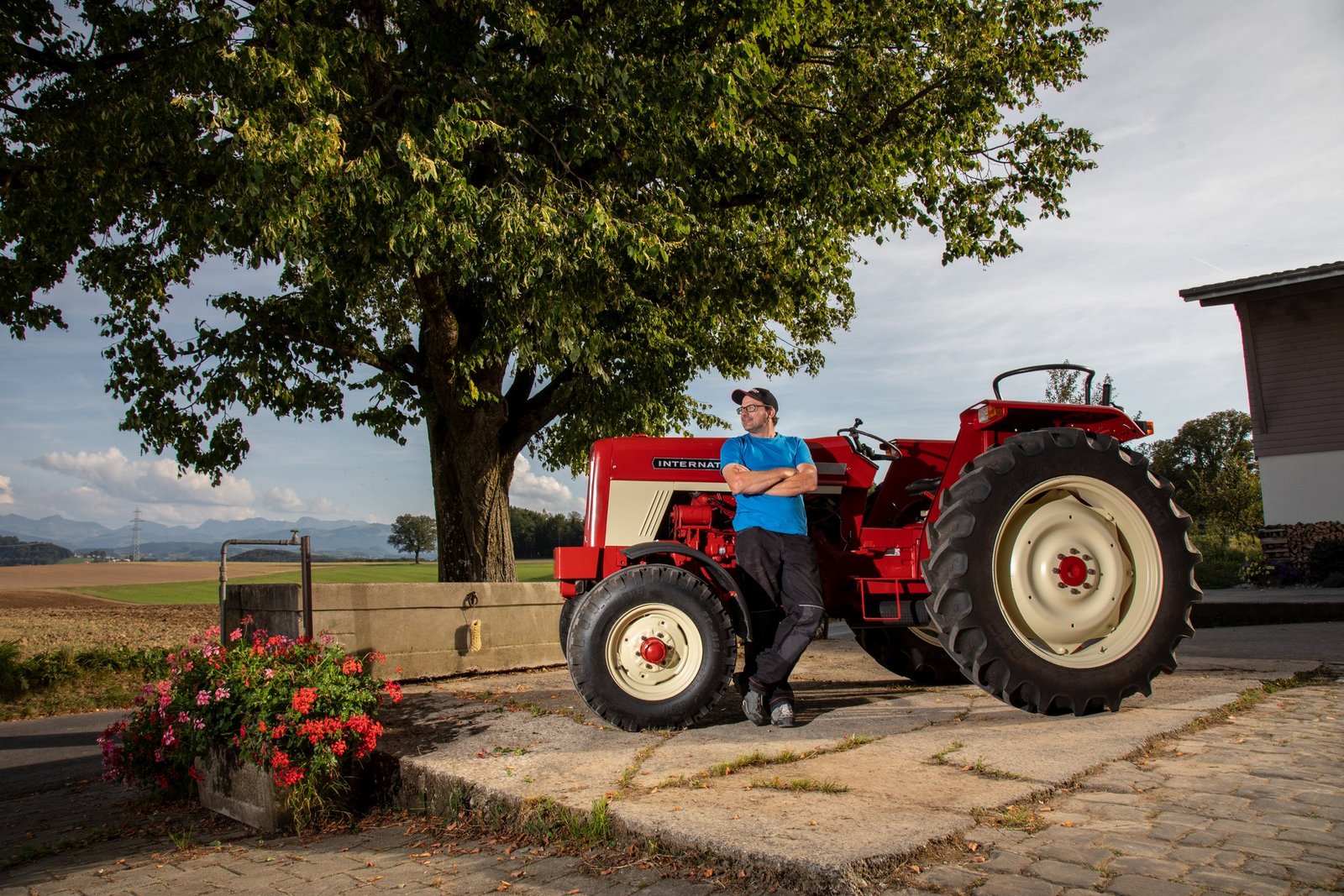 Elmar Hayoz (41) ist Landwirt in Jetschwil in Düdingen FR: «Mein Vater hat diesen International Harvester IH 574 im Jahr 1972 gekauft. Dieses englische Modell konnte man als ersten Traktor mit einem hydrostatischen Antrieb haben.»