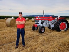 Nicola Röthlisberger, Mechaniker und Landwirt (24) in Siselen BE, gefällt der Massey Ferguson 1100 optisch sehr gut. Die Technik des Traktors ist zwar alt, funktioniert aber immer noch sehr gut.