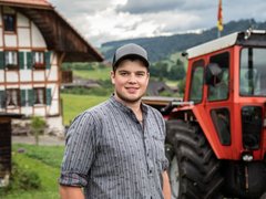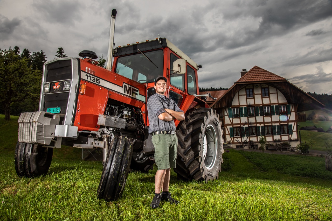 Lorenz Röthlisberger (24), Metzger und Landwirt in Ausbildung aus Bowil BE, ist von seinem Massey Ferguson 1135 begeistert: