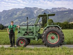 Jan Kropf (21), Landwirt aus Wattenwil BE, ist begeistert von den Bührer-Traktoren: «Ich bin Landwirt und Bührer-Sammler: Ich besitze einen PF 18, einen PP 17 und einen 455. Der PF 18 ist mein TraumTraktor, weil ich ihn mit meinem Vater restauriert habe.