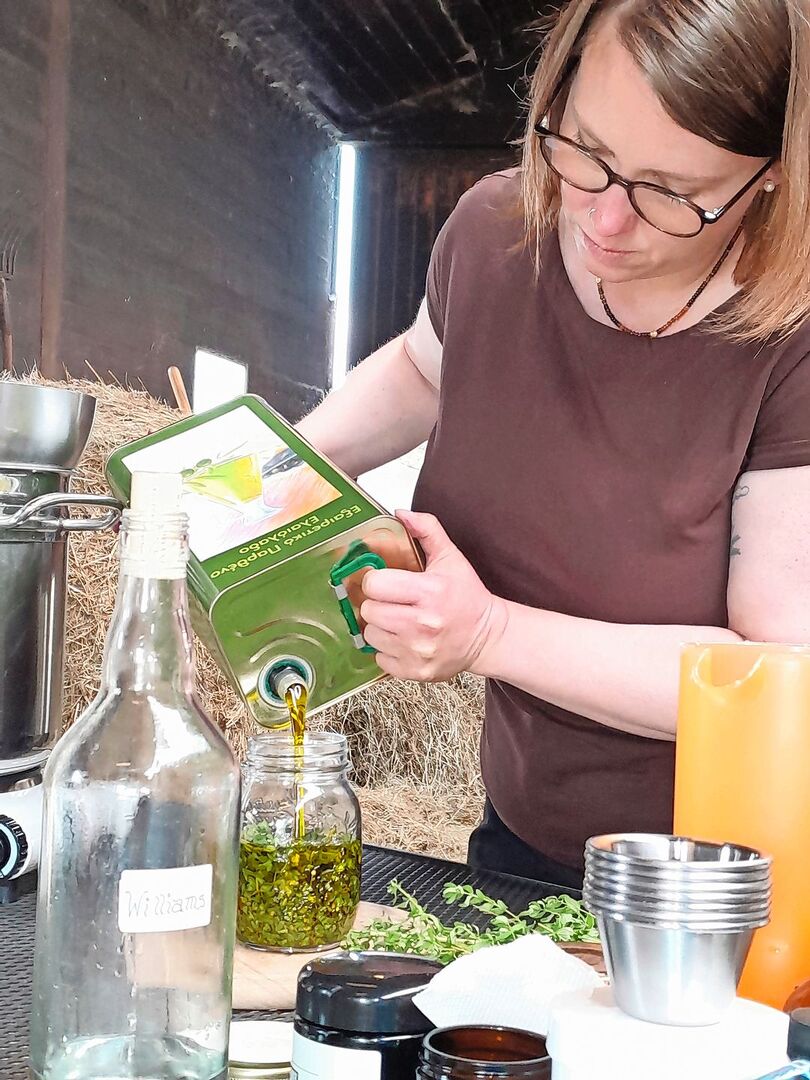 In einem kurzen Video erklärt Michelle Krügel, in welcher Form die Pflanzen bei Kuh und Kalb zur Anwendung kommen. Sie erklärt, worauf beim Sammeln zu achten ist, wie aus Pfefferminz zum Beispiel ein erfrischendes Hydrolat wird oder aus einer Ringelblume eine Salbe.