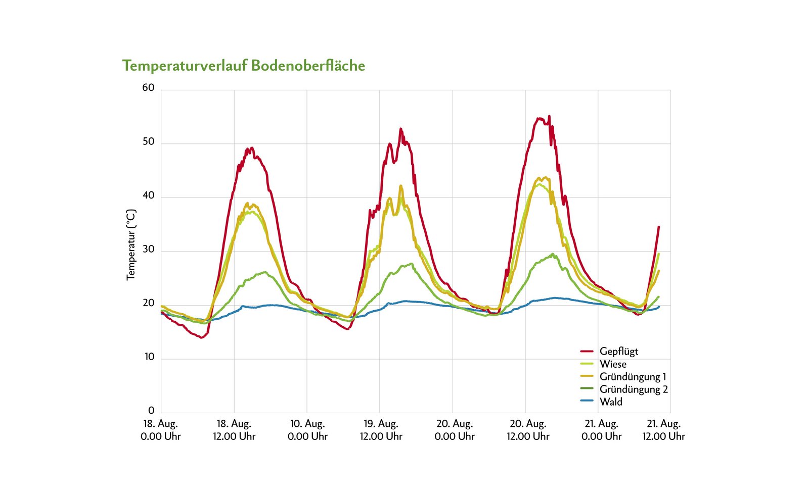 Kurz & bündig - Neue Bodentemperatur-Messungen zeigen, dass sich bearbeiteter, unbedeckter Boden im Sommer äusserst stark erhitzt. Teilweise auf mehr als 50 Grad bis sogar 60 Grad an der Oberfläche. - Durch die übermässige Hitze sterben wertvolle Bodenlebewesen wie Pilze und Bakterien ab. - Das führt zur Zerstörung den Bodenstruktur, wodurch der Boden nicht mehr fähig ist, grosse Wassermengen aufzu-nehmen und zu…