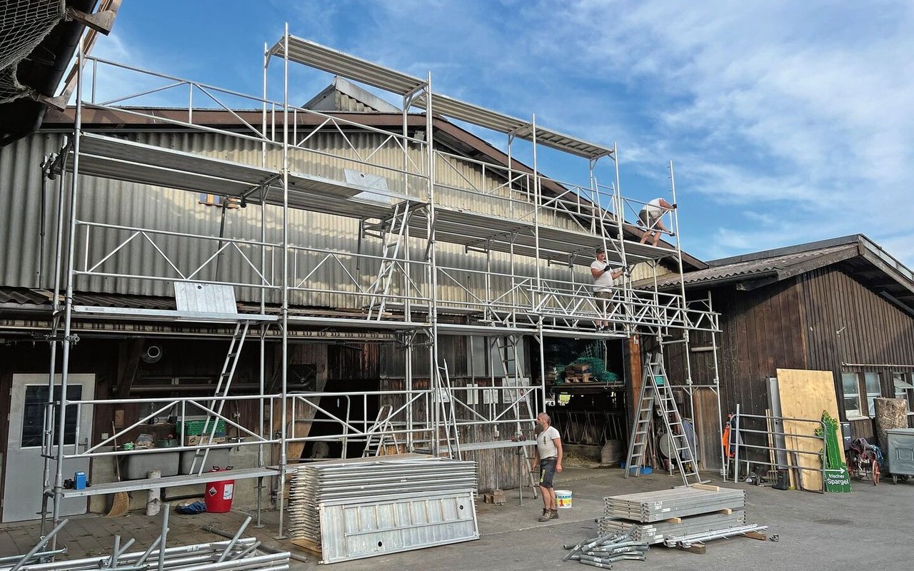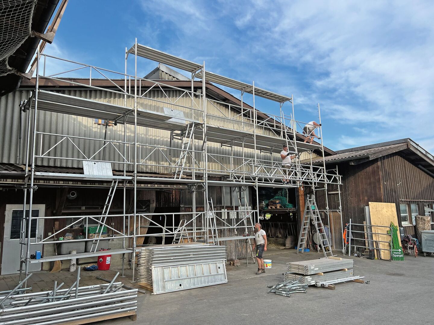 Seit dem 2. Mai steht das Gerüst am Kuhstall.